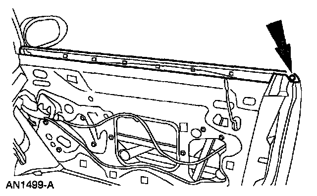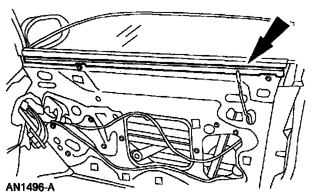 7. Tip the front of the glass down to clear the door filler and remove the door window glass.