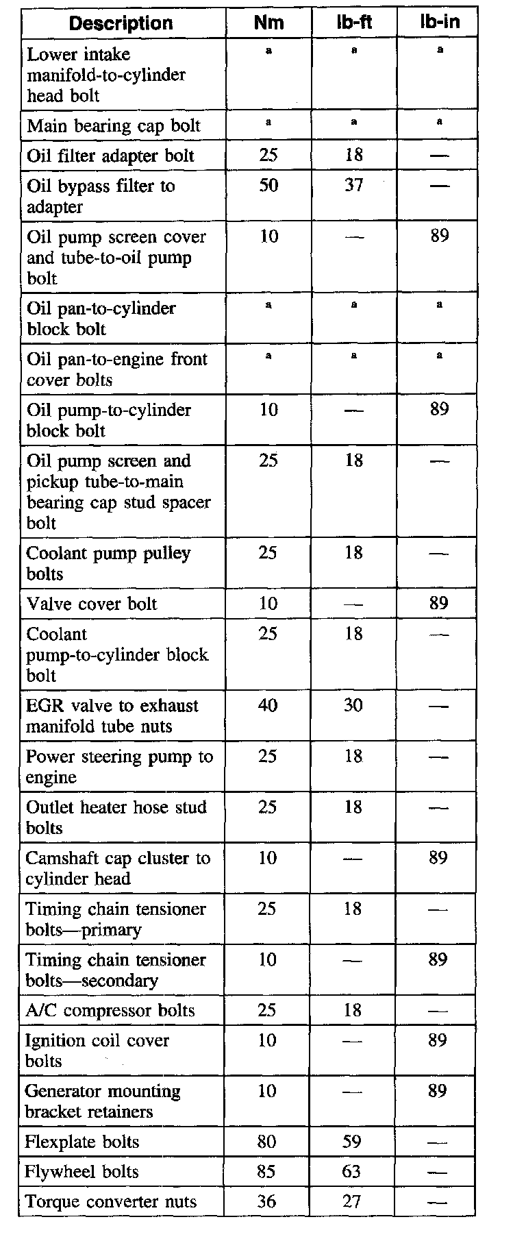 Torque Specifications