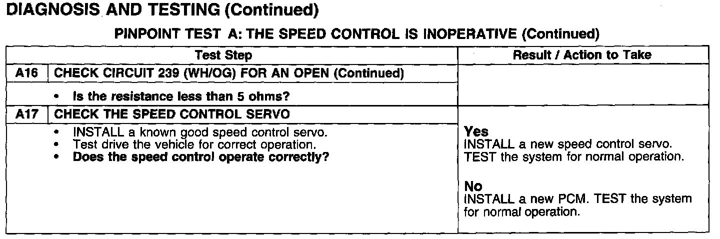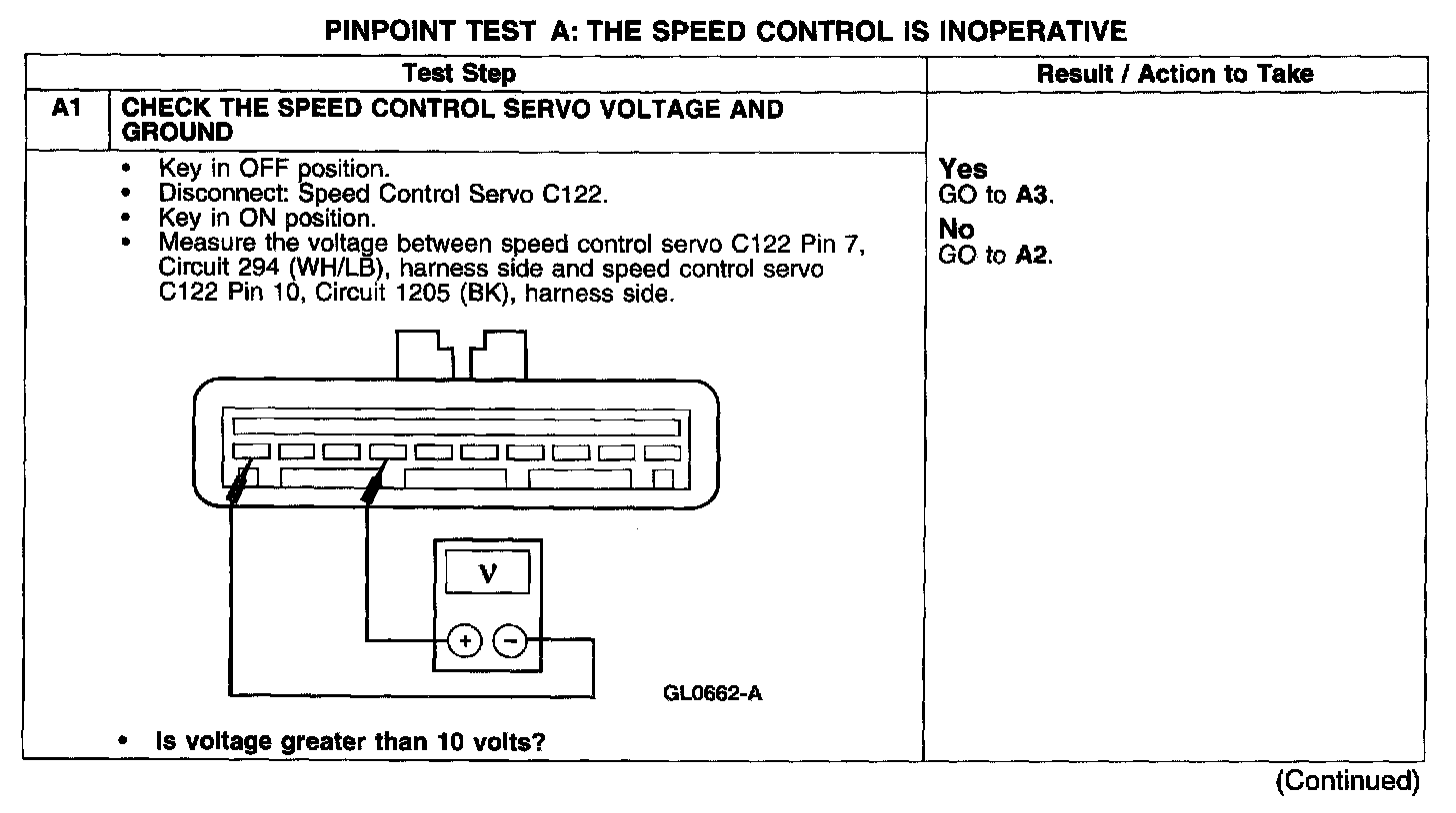 PINPOINT TEST A: THE SPEED CONTROL IS INOPERATIVE