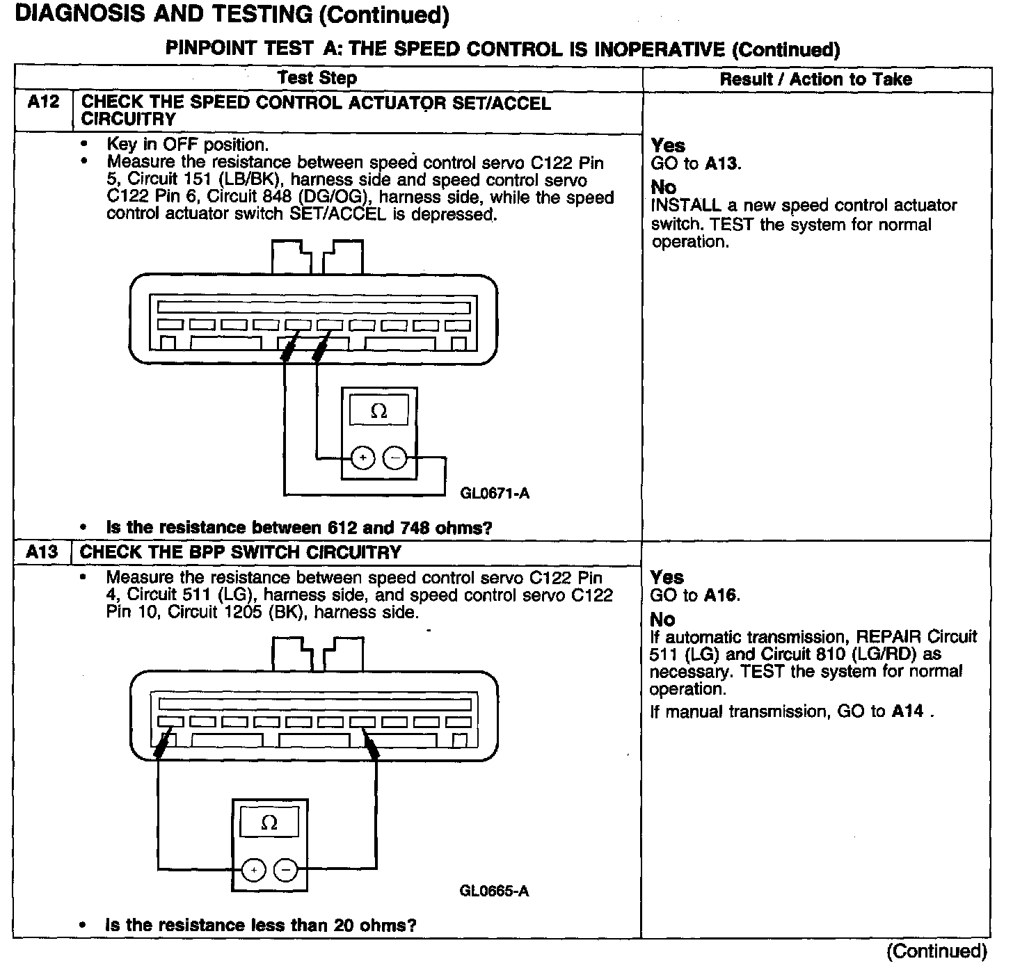 Test A: Speed Control Is Inoperative