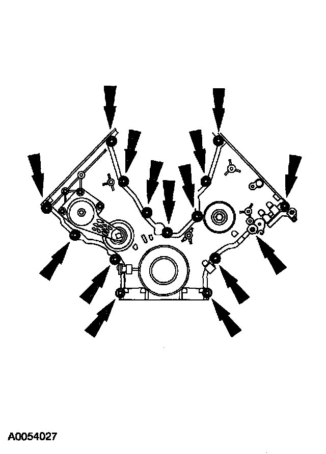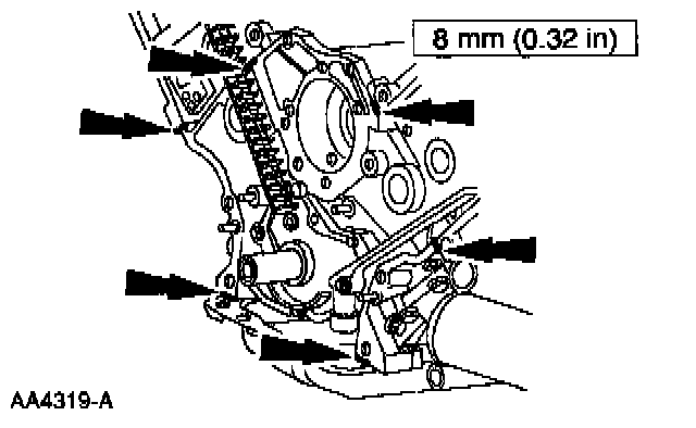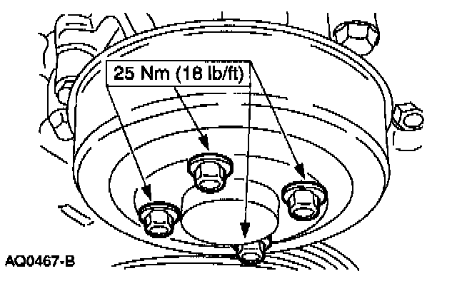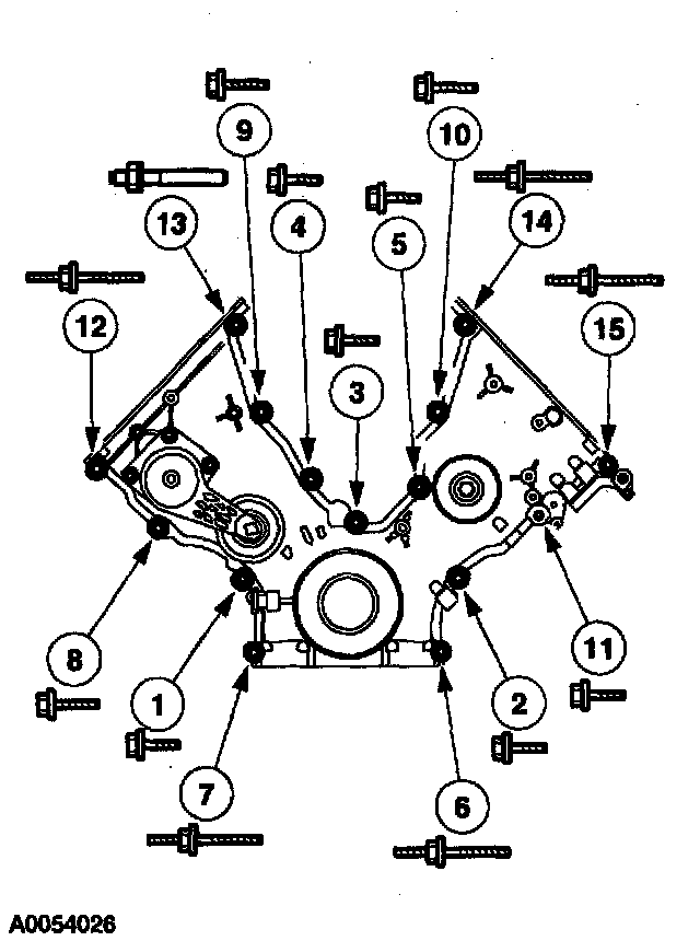 2. Install the engine front cover and tighten the fasteners in the sequence shown, to 25 Nm (18 inch lbs.).