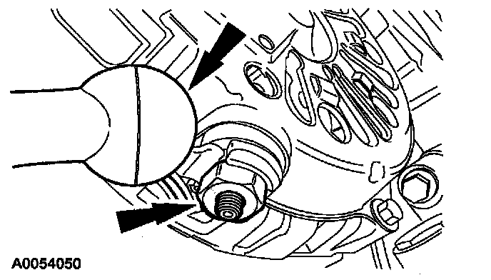 9. Remove the generator B+ terminal nut and detach the B+ cable.