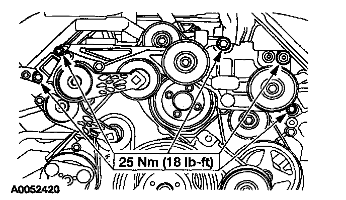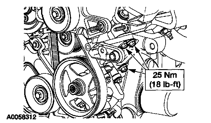 25. Remove the fasteners and the supercharger belt idler support bracket assembly.