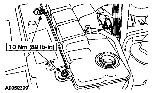 5. Remove the bolts and position the coolant bottle aside.