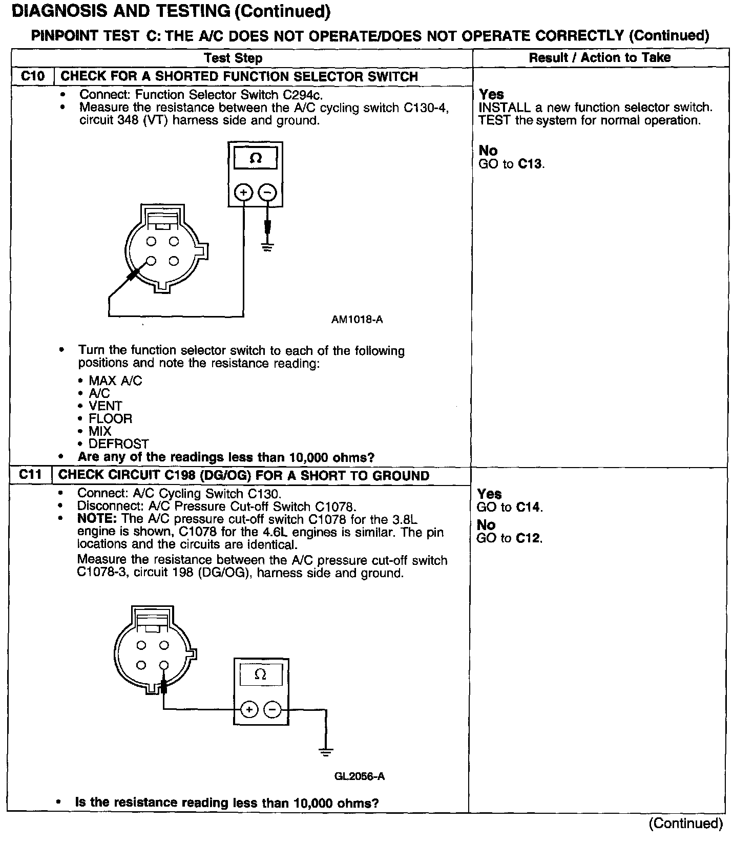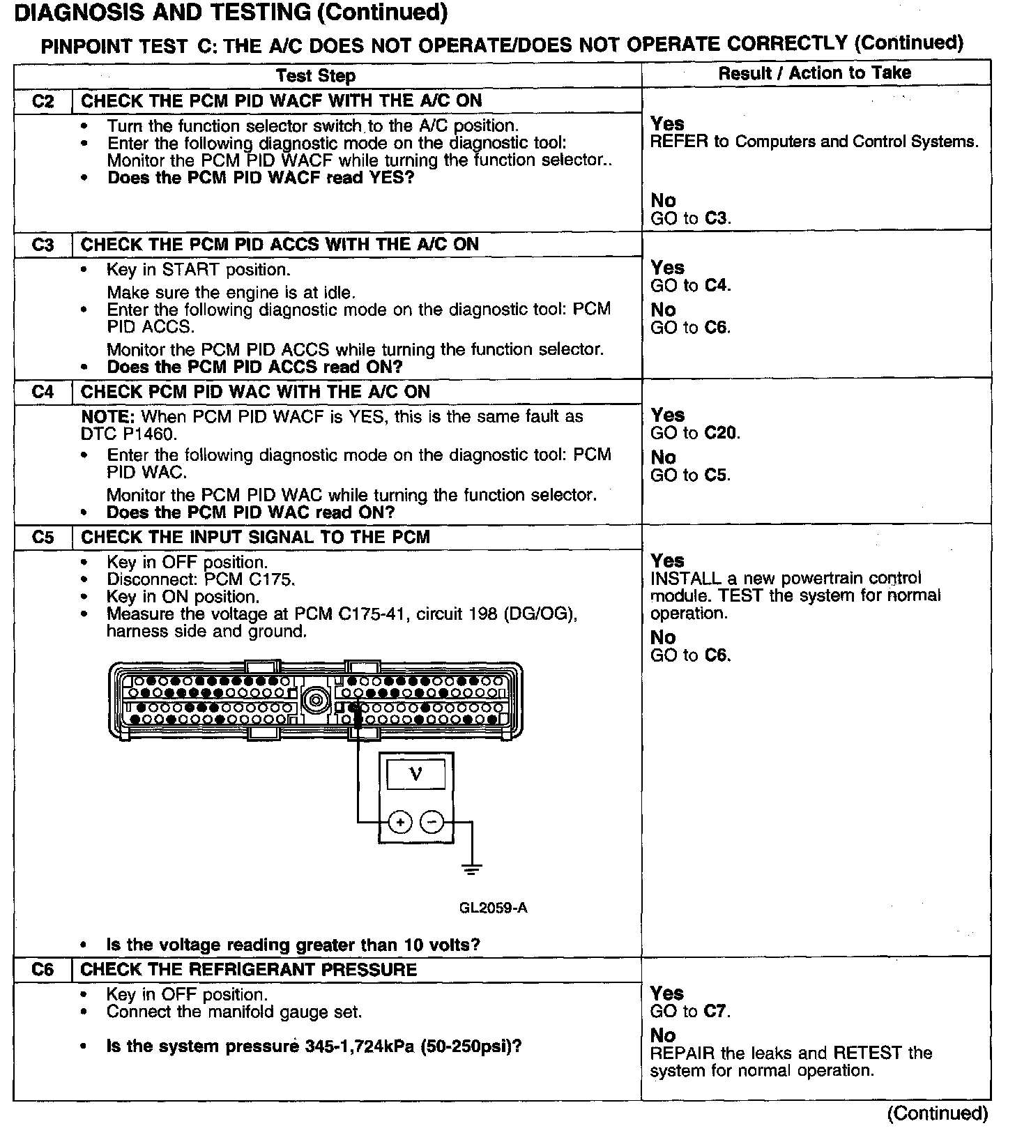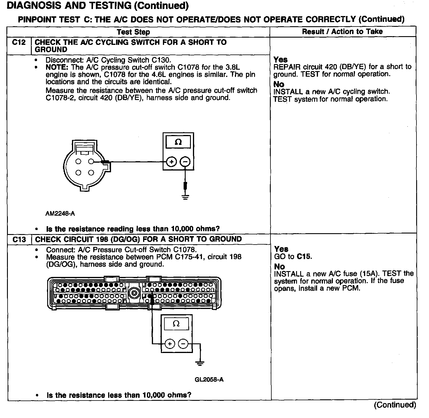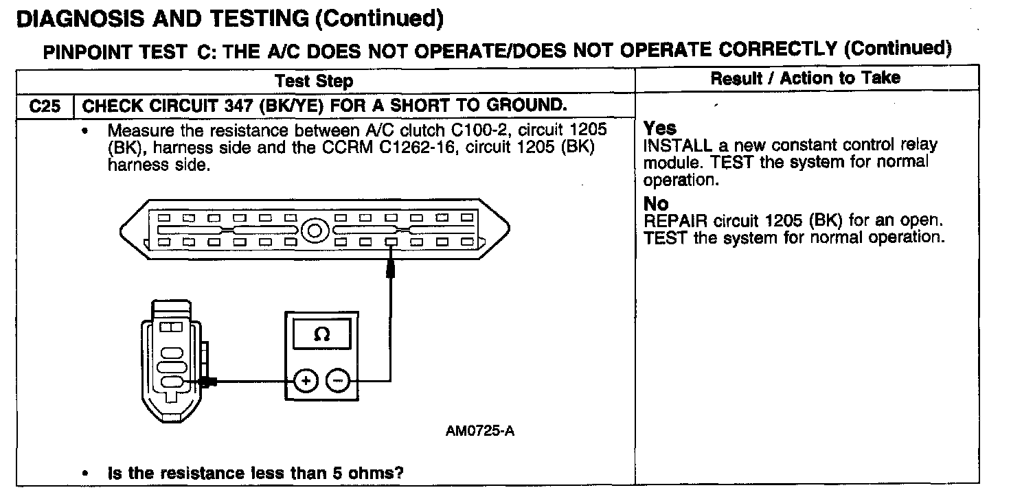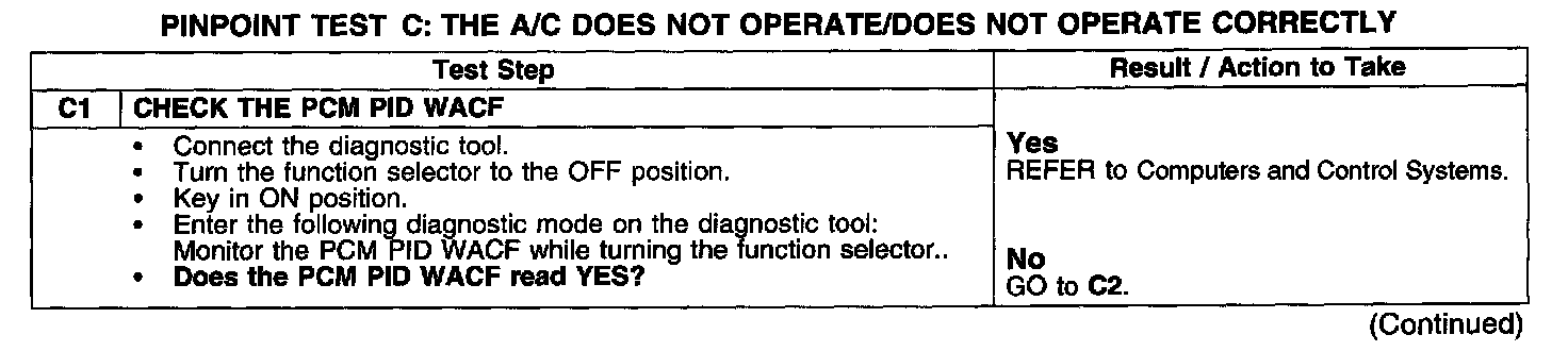 Test C: A/C Does Not Operate/Does Not Operate Correctly
