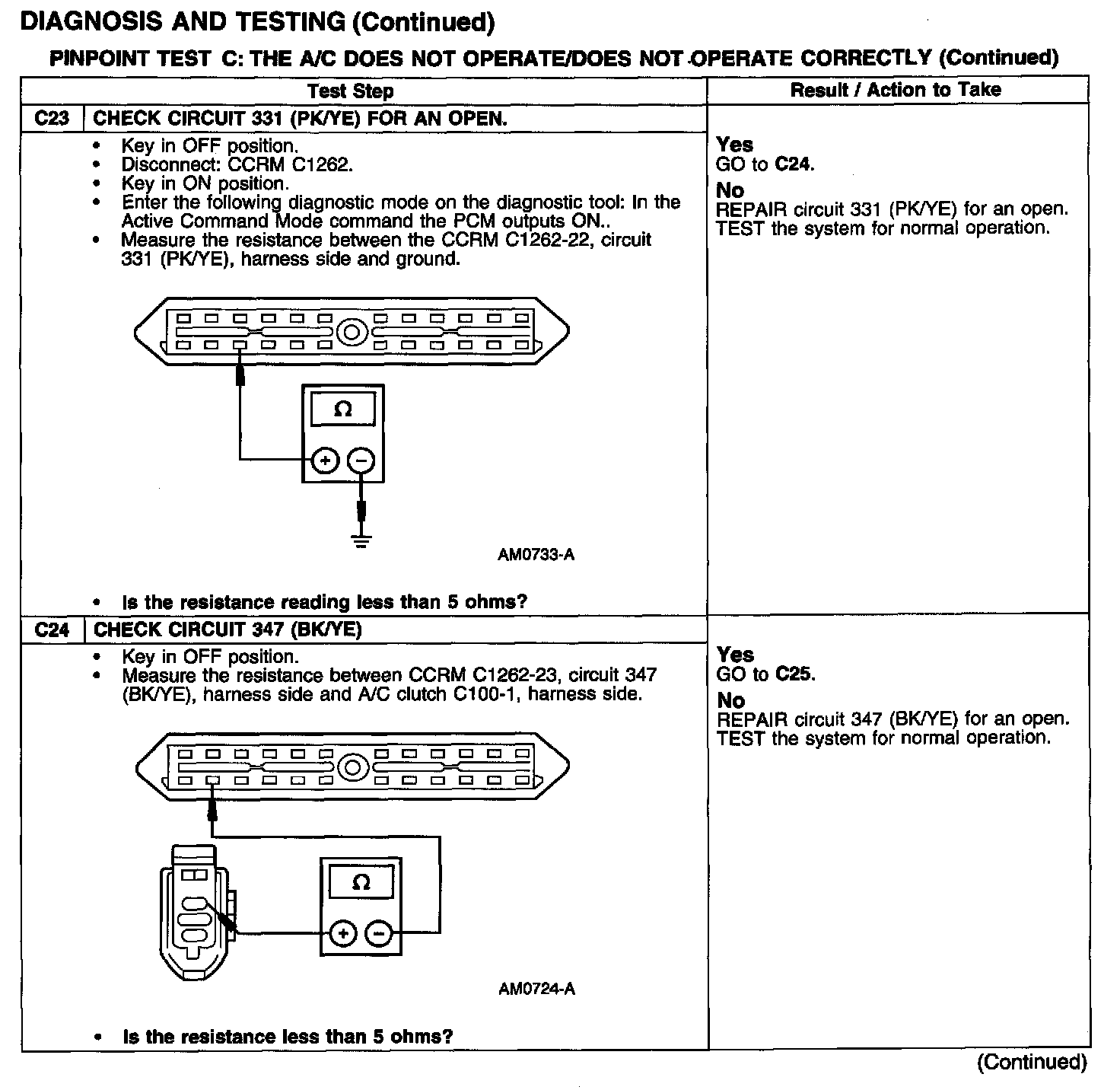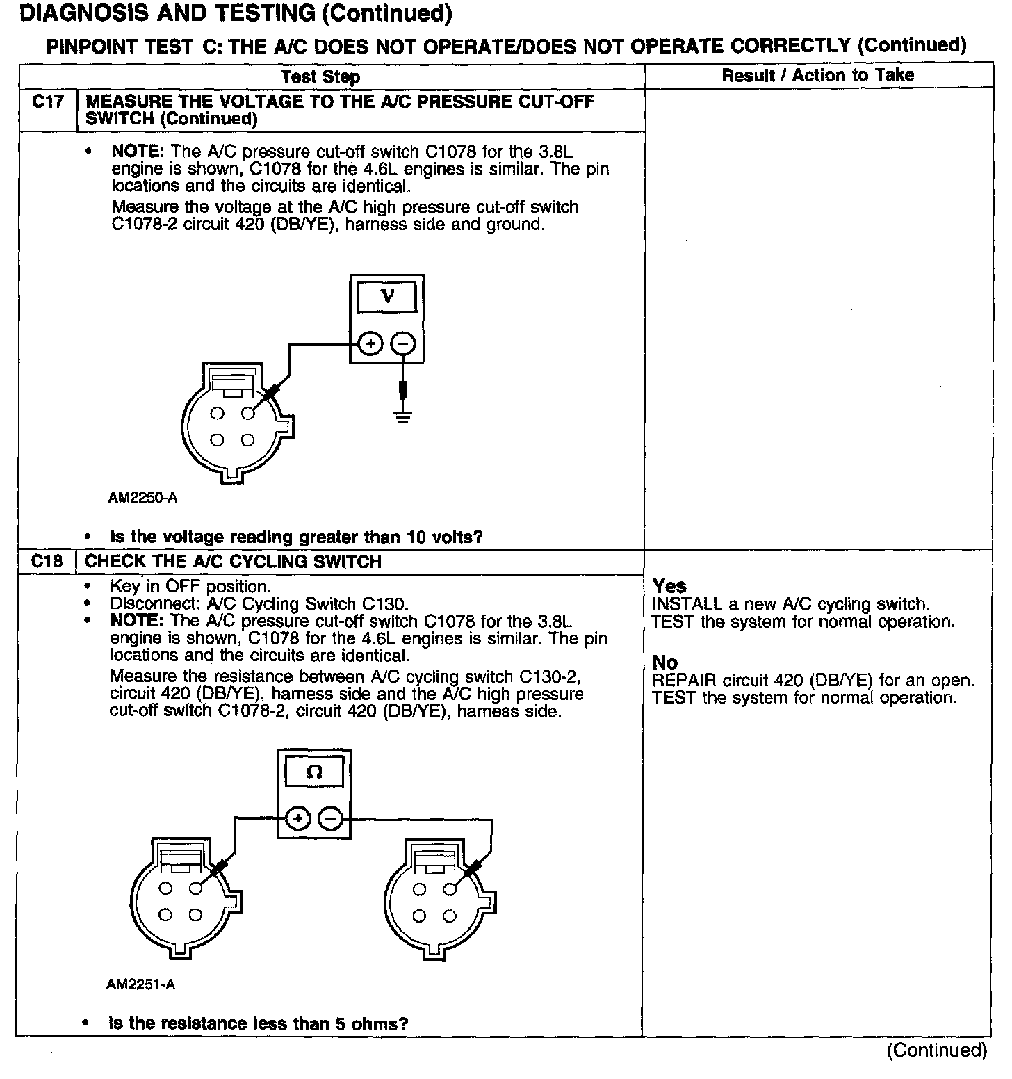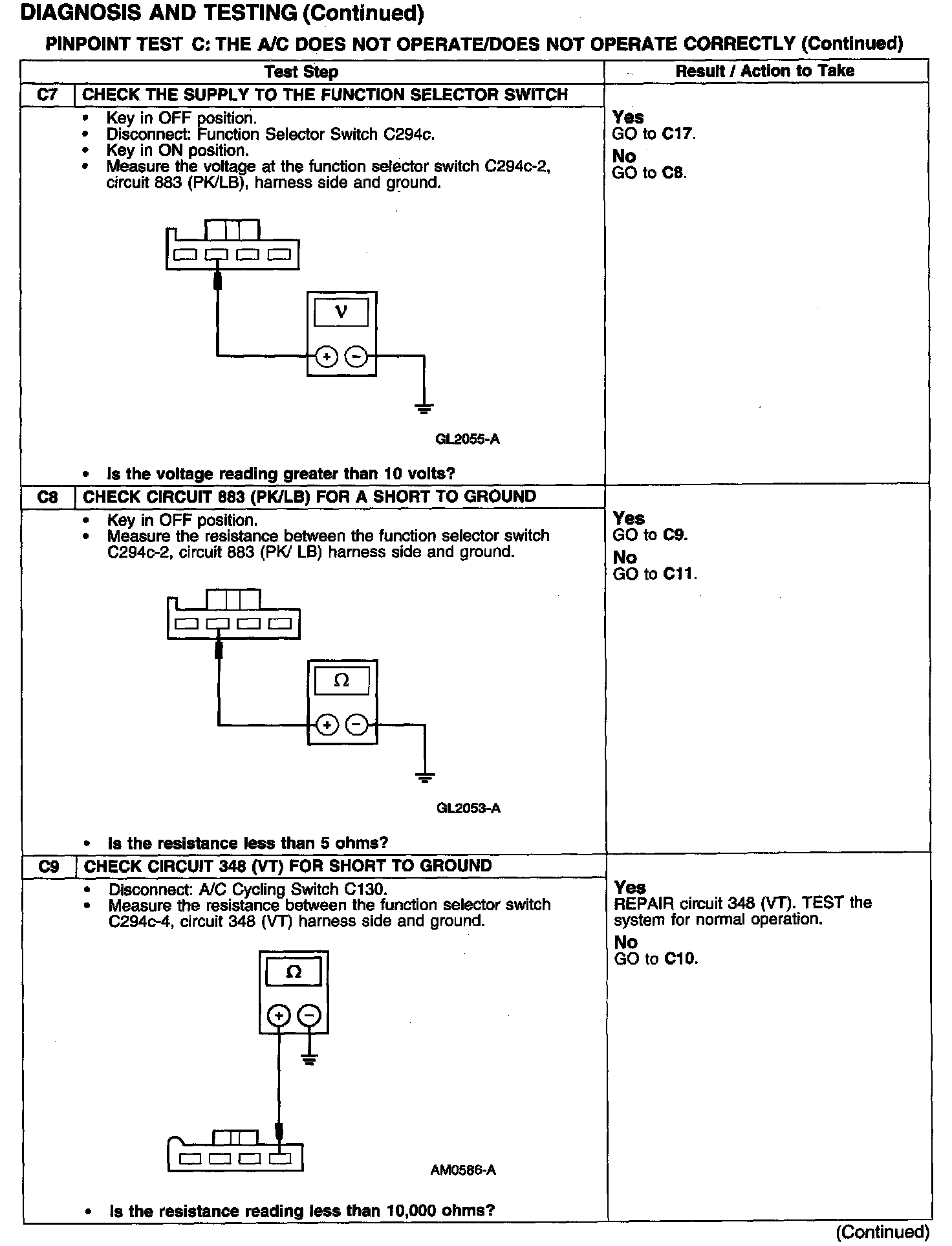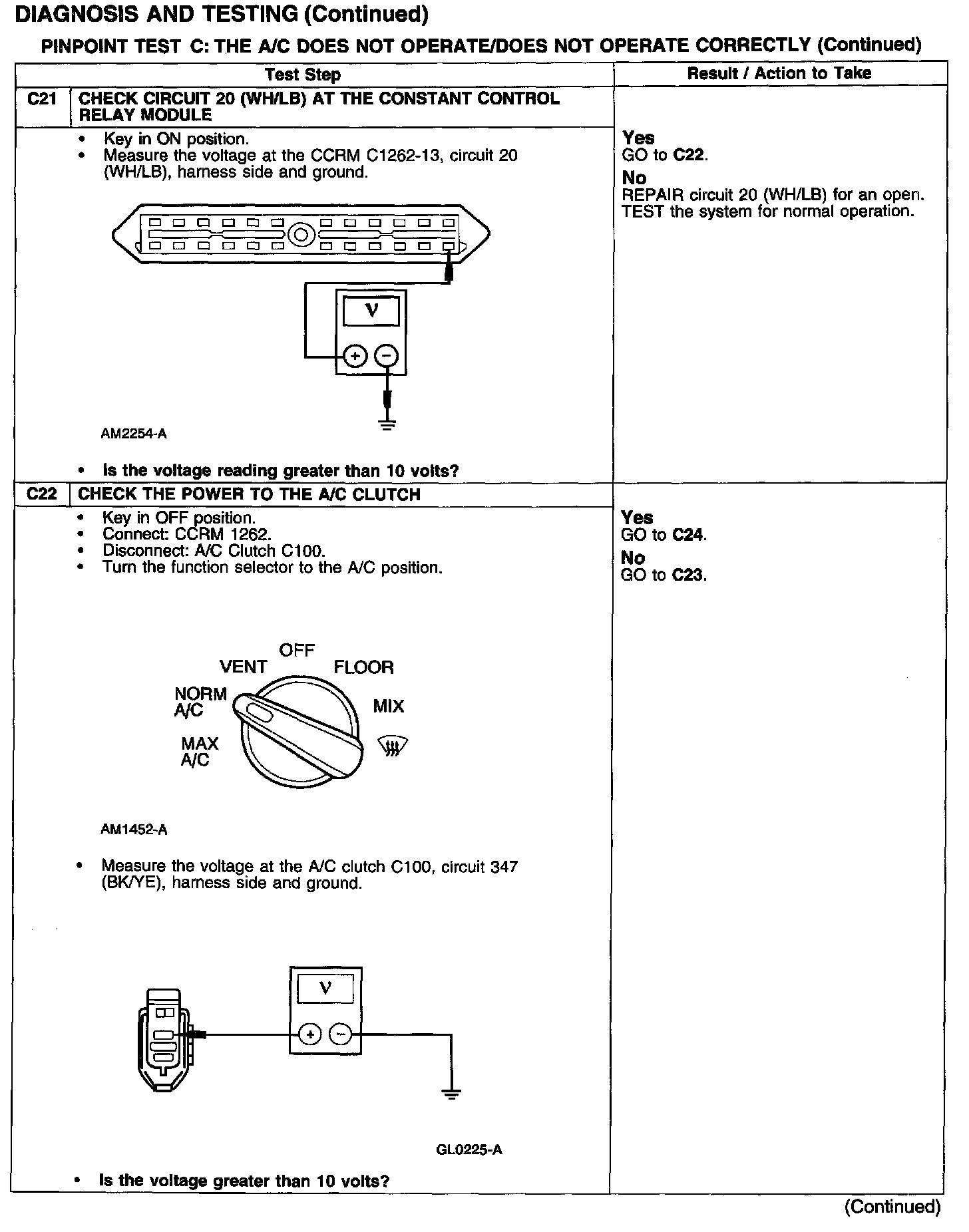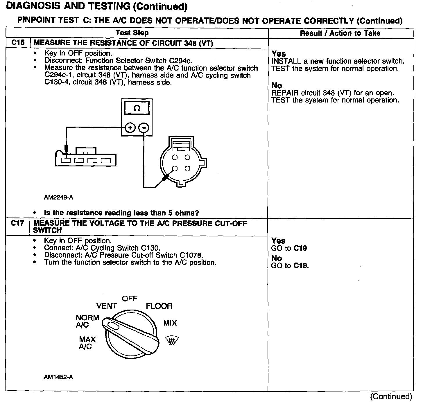 Test C: A/C Does Not Operate/Does Not Operate Correctly