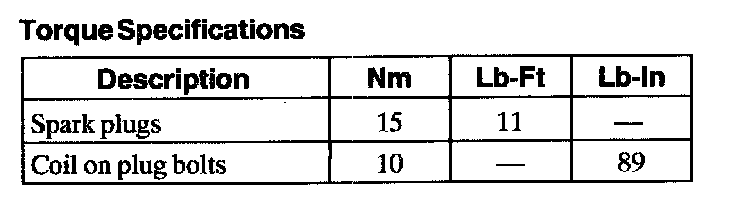 Torque Specifications: