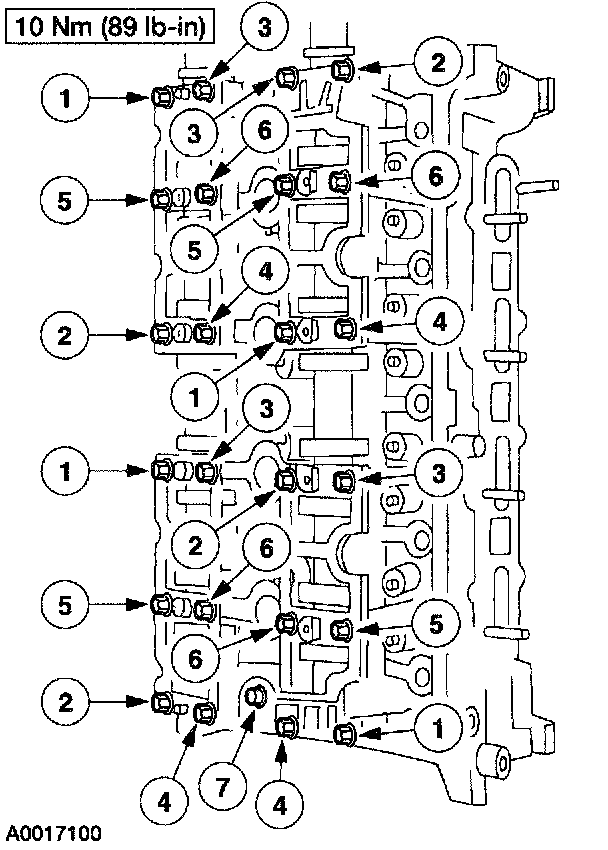 Camshaft bearing cap torque and sequence