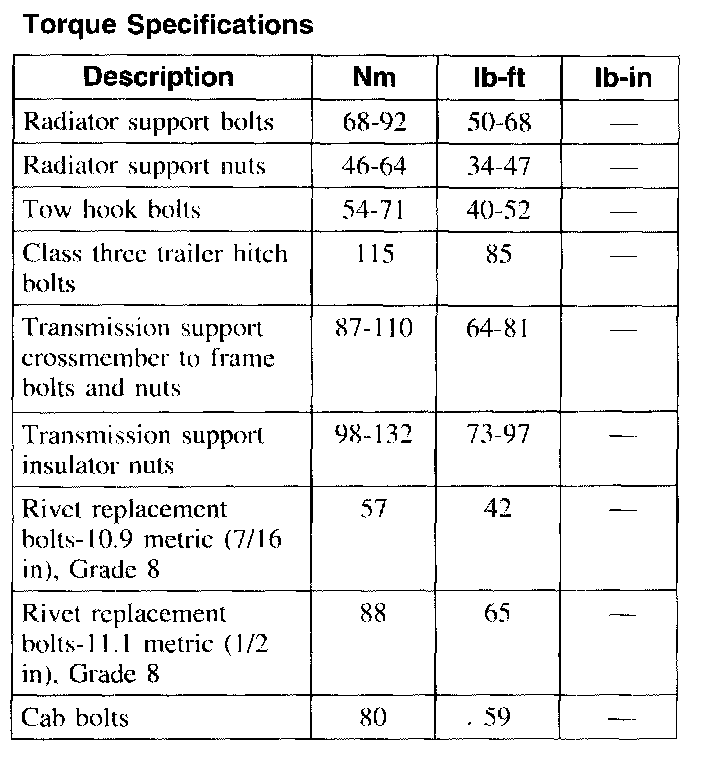 Torque Specifications: