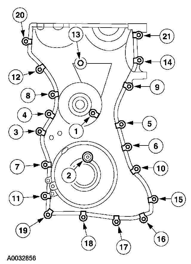 4. Install the front cover. Tighten the bolts in the sequence shown, to the following specifications: