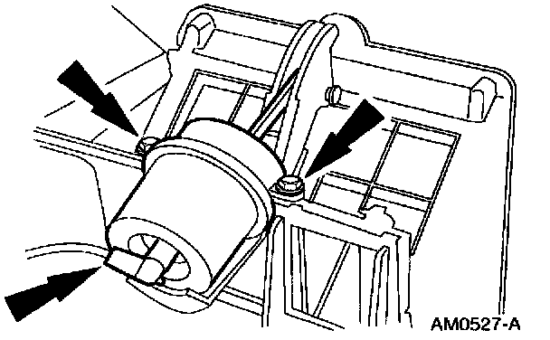 2. Remove the screws from the air inlet duct door vacuum control motor and disconnect the vacuum hose.