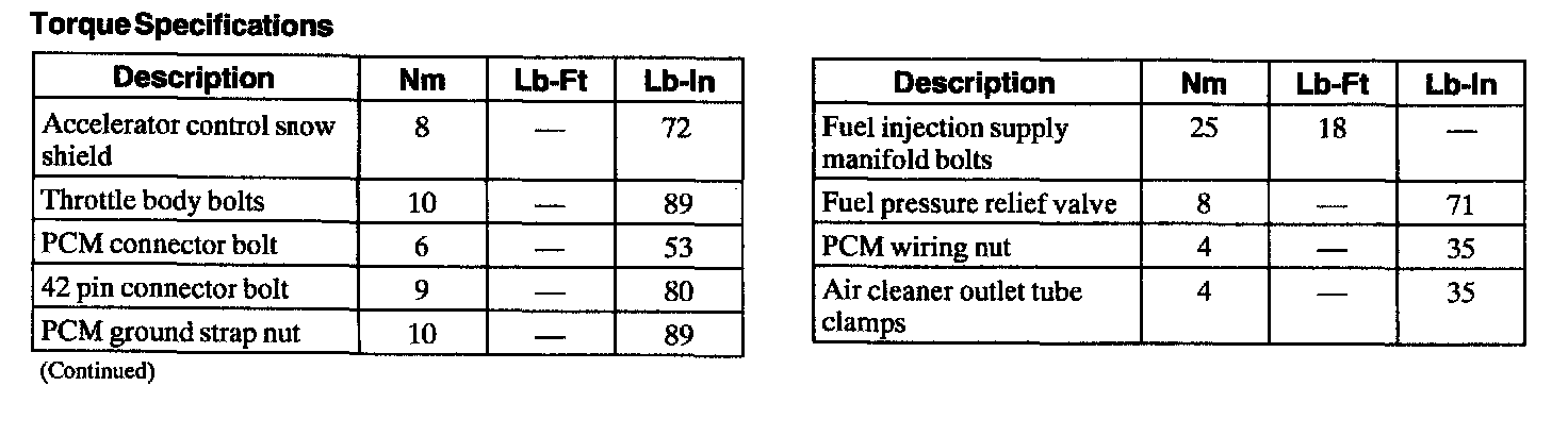 Torque Specifications: