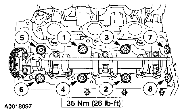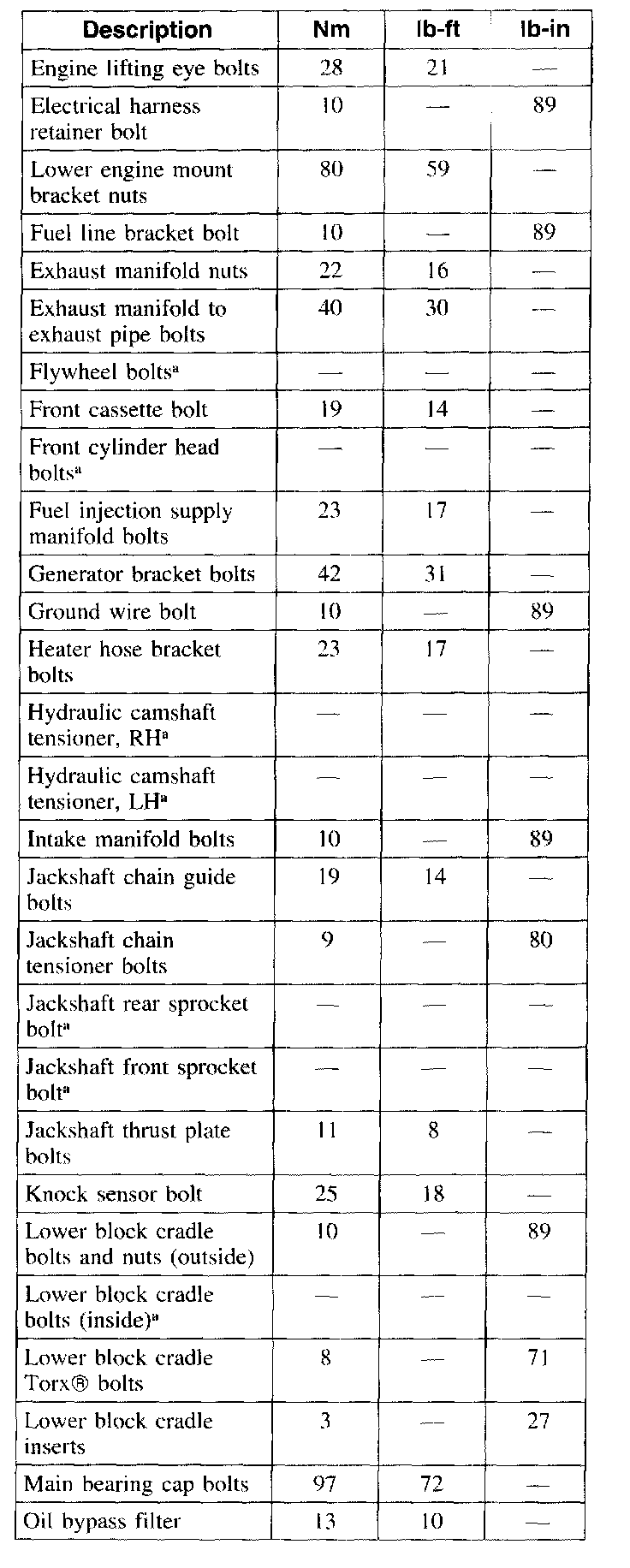 Main bearing cap bolts 97 Nm (72 ft. lbs.)