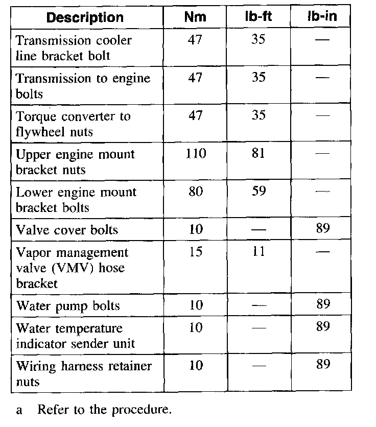 Torque Specifications