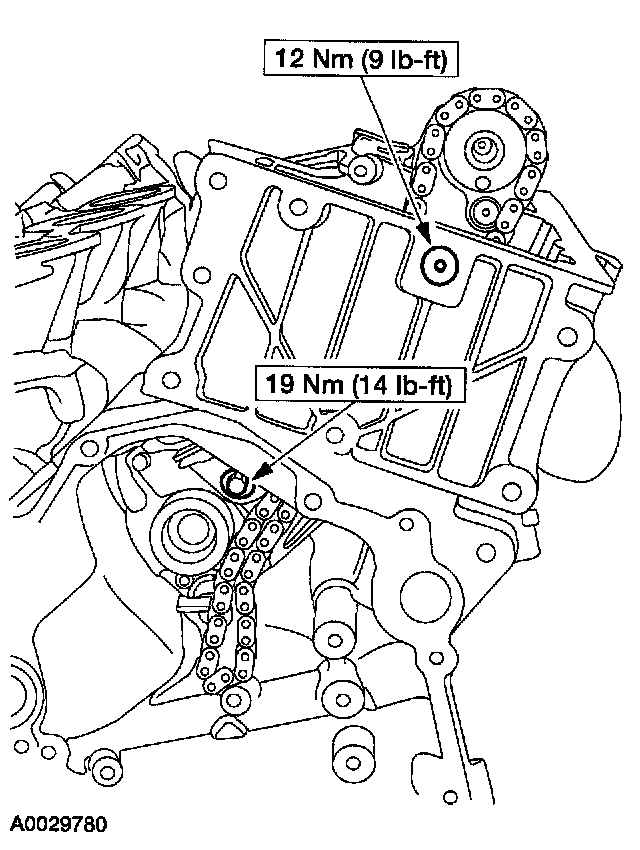 Engine front cover bolts 19 Nm (14 ft. lbs.)Camshaft sprocket bolt 85 Nm (63 ft. lbs.)