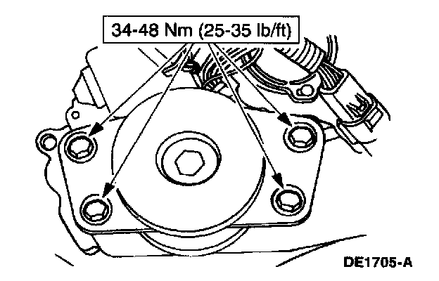 1. NOTE: If new bolts are not available, coat the threads of the used bolts with Ford Threadlock 262 or equivalent meeting Ford specification WSK-M2G315-A5 Type 1.