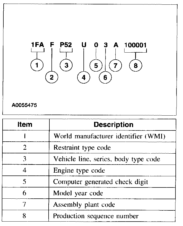 Positions 5 through 7 indicate vehicle line, series and body type.