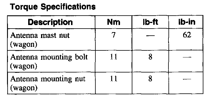 Torque Specifications: