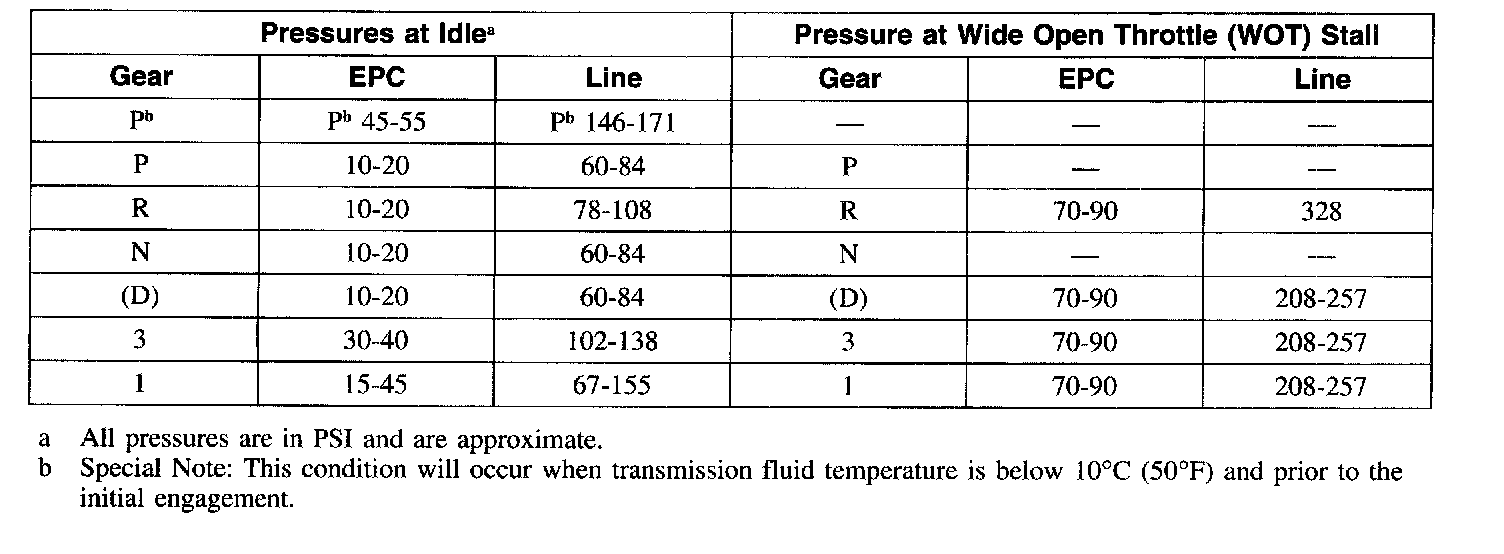 Line Pressure Chart - 4F50N Automatic Transaxle