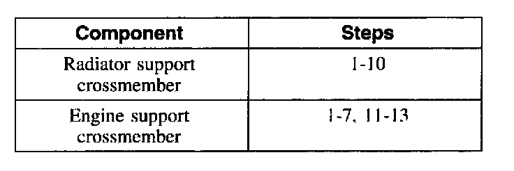 4. If removing the radiator support crossmember, support the radiator.