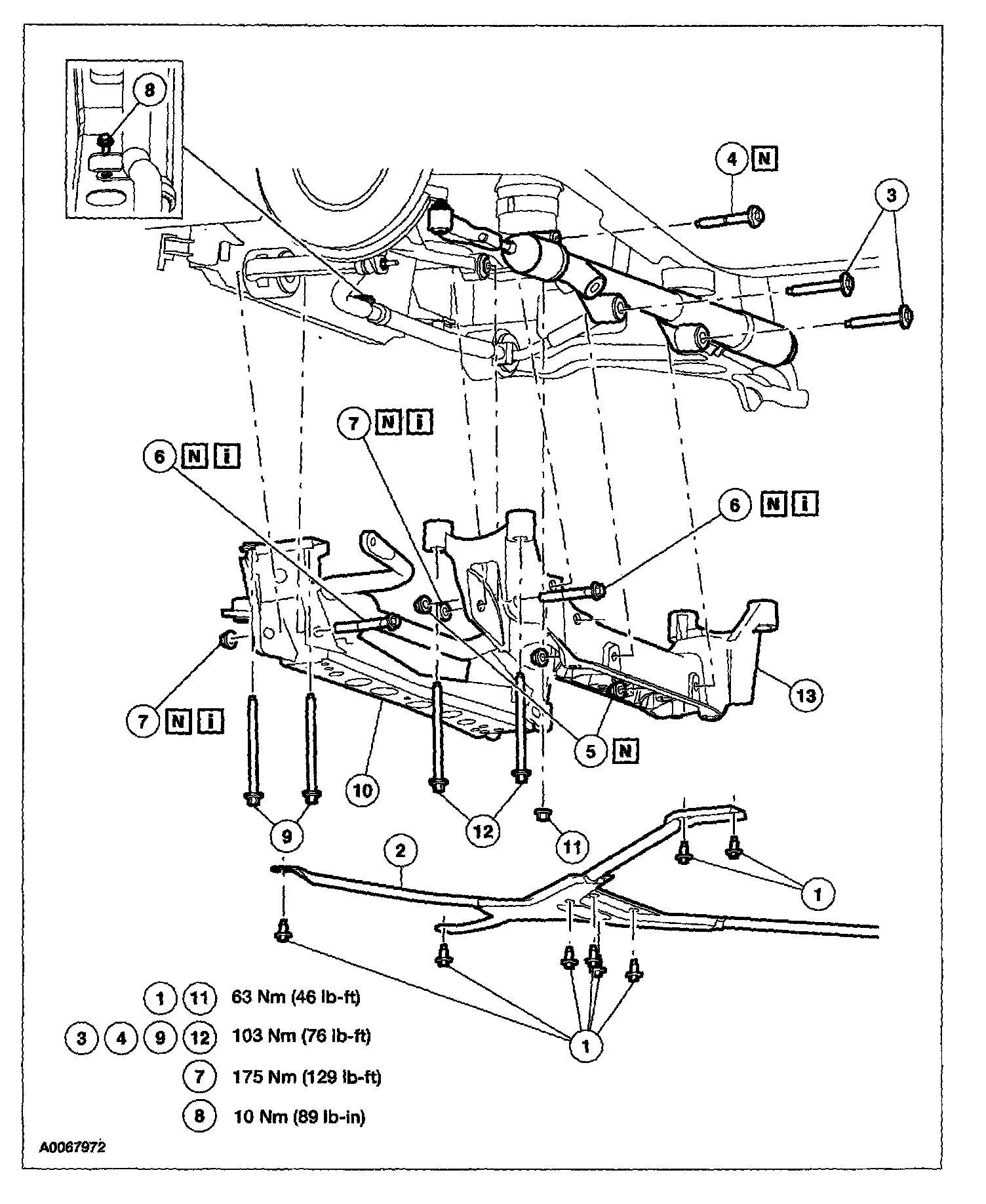 CAUTION: Suspension fasteners are critical parts because they affect the performance of vital components and systems and their failure can result in major repair expense. A new part with the same part number must be installed if installation is necessary. Do not use a new part of lesser quality or substitute design. Torque values must be used as specified during reassembly to make sure of correct retention of these parts.