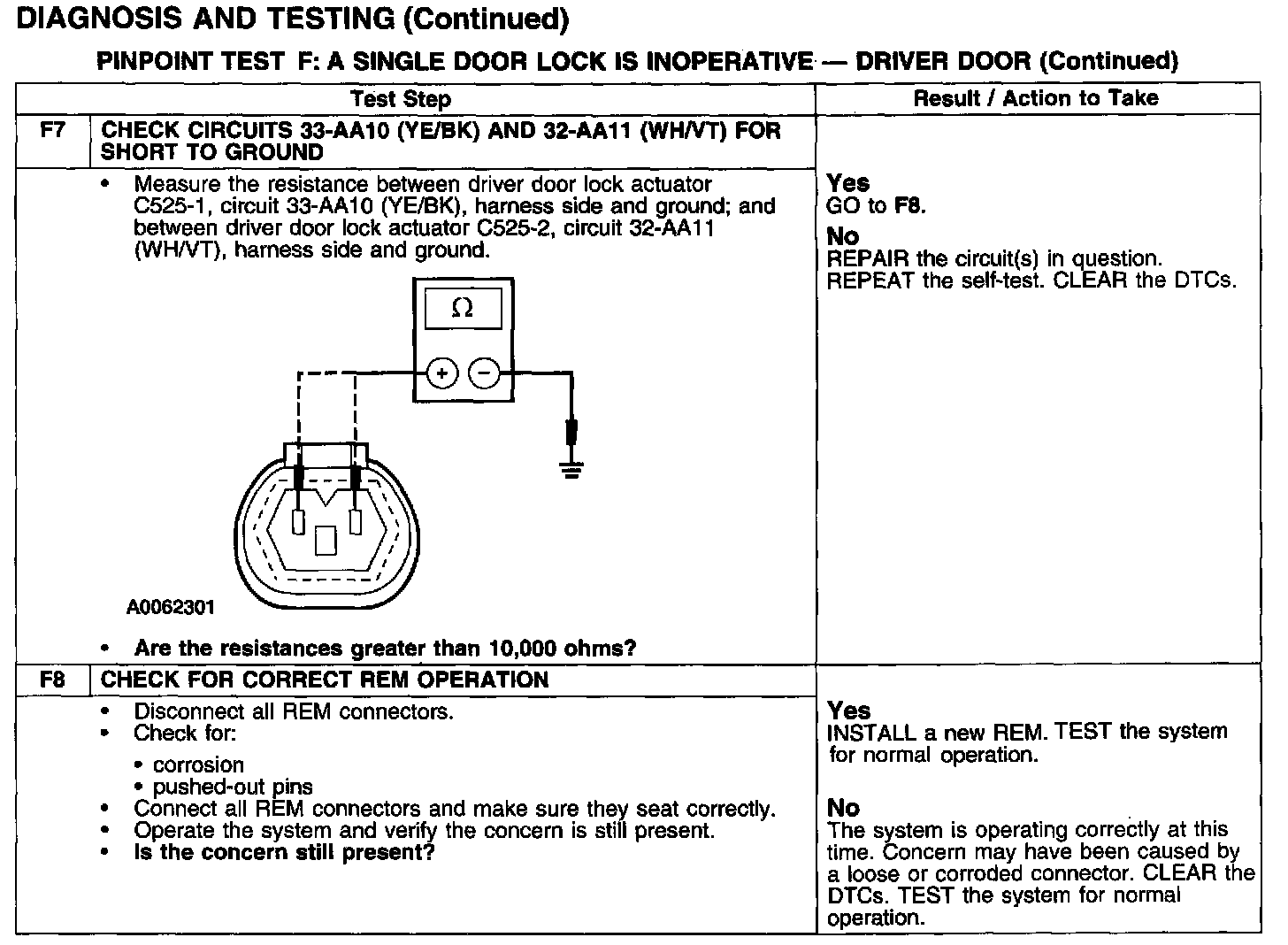 PINPOINT TEST F: A SINGLE DOOR LOCK IS INOPERATIVE - DRIVER DOORTest F1: