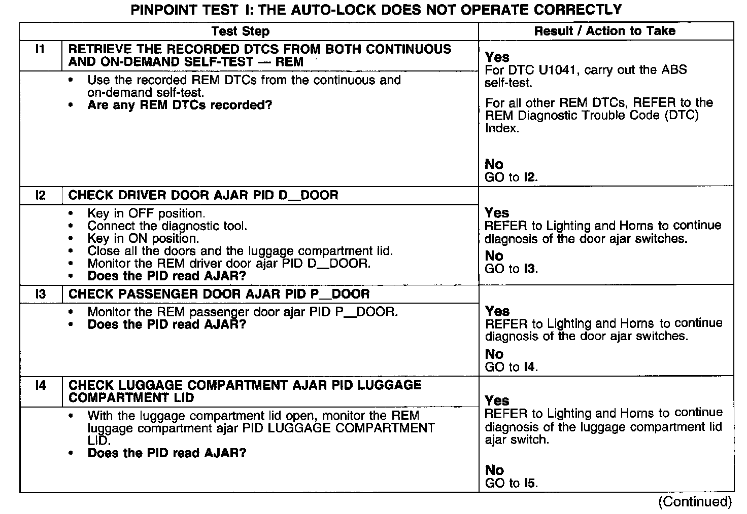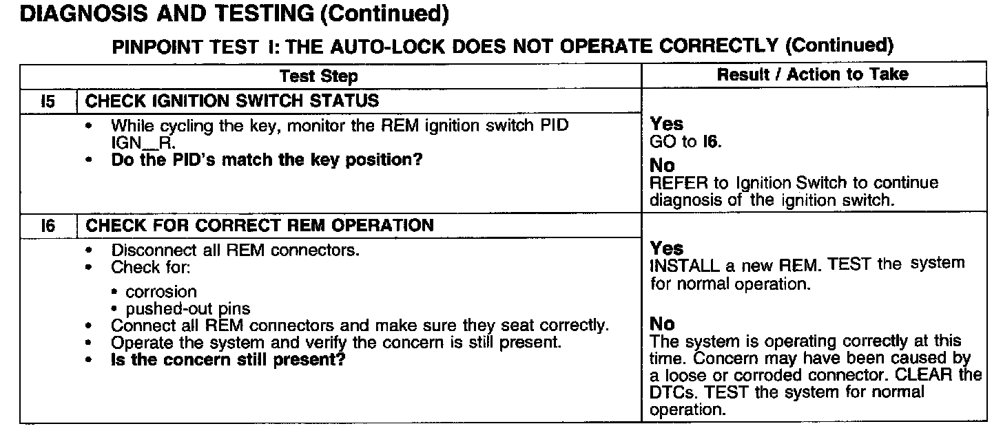 PINPOINT TEST I: THE AUTO-LOCK DOES NOT OPERATE CORRECTLYTest I1-I4: