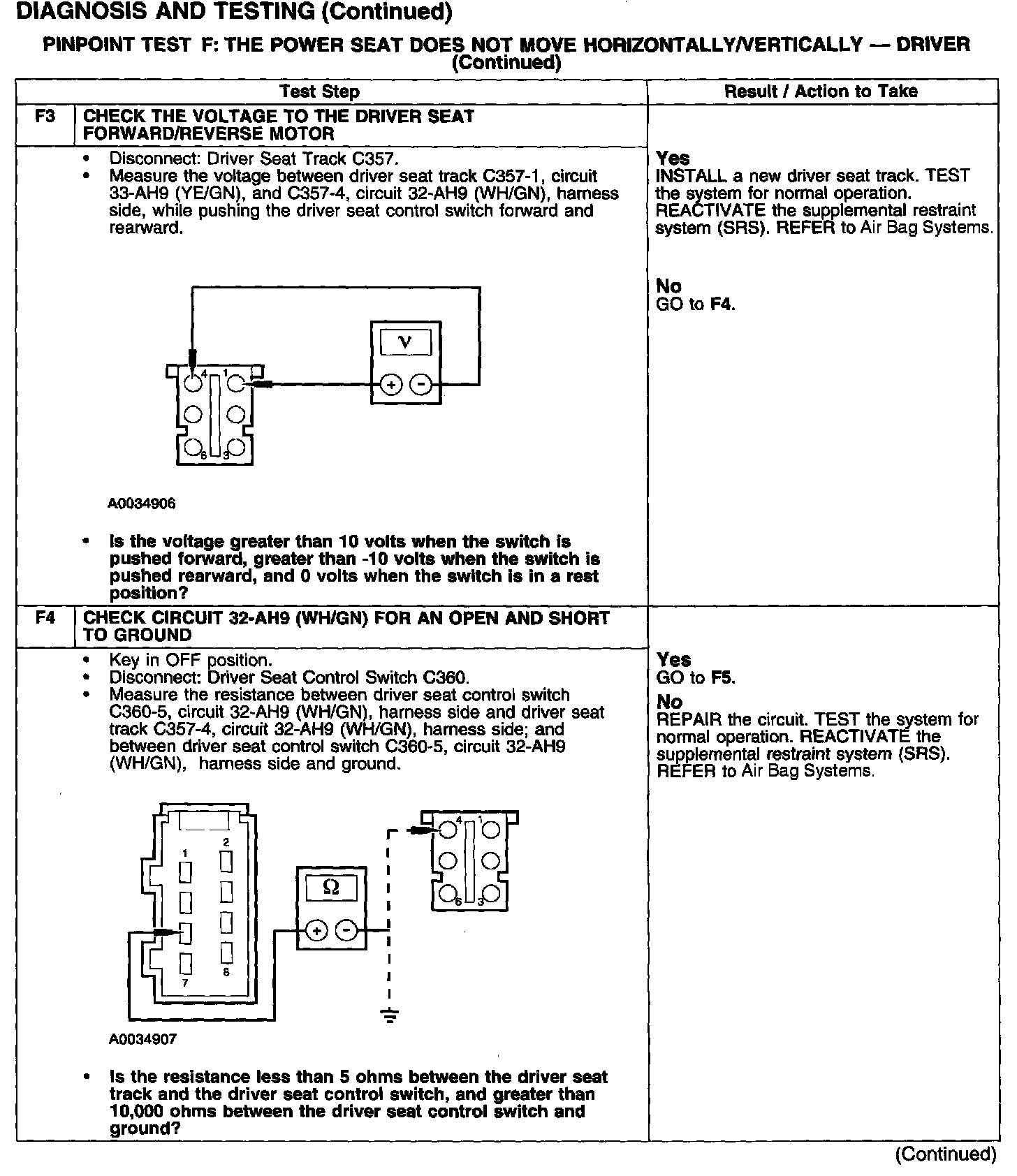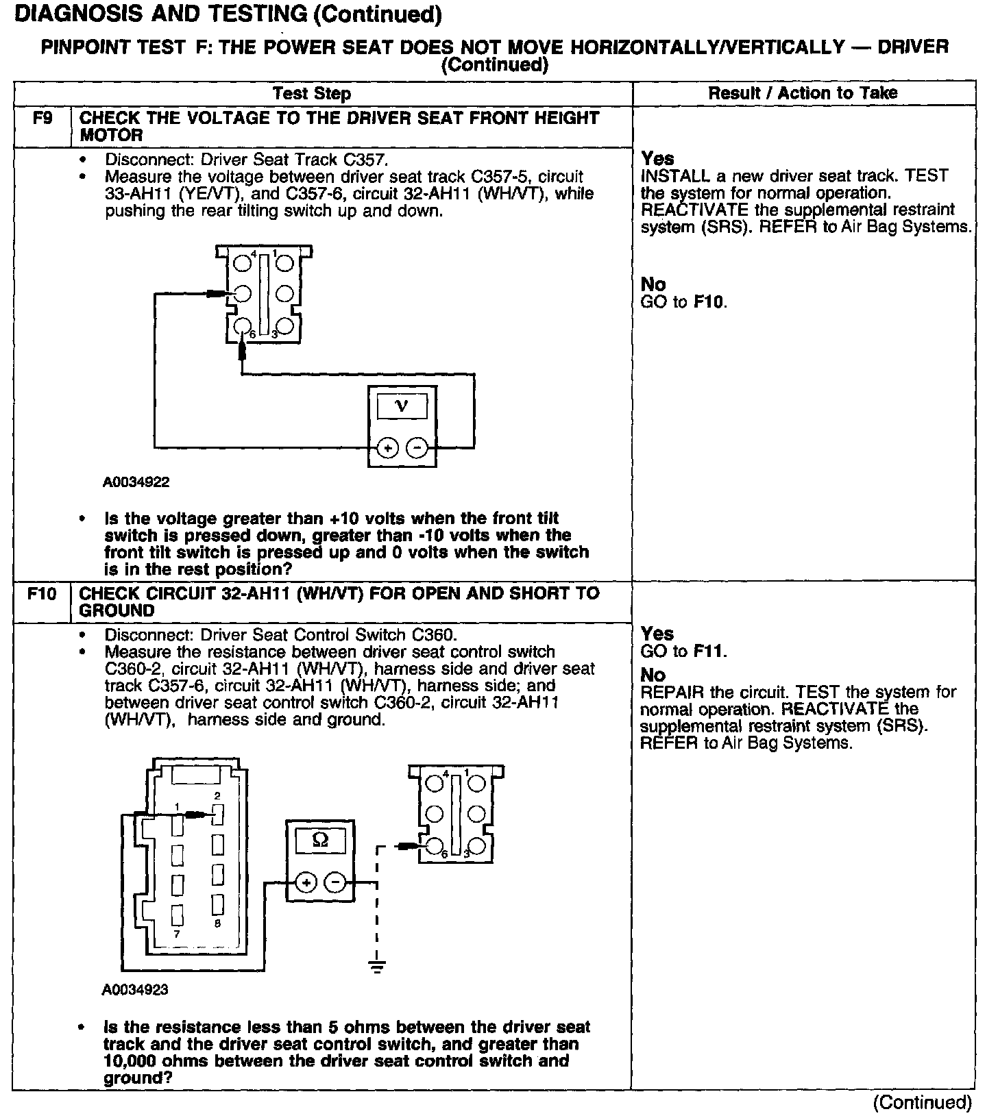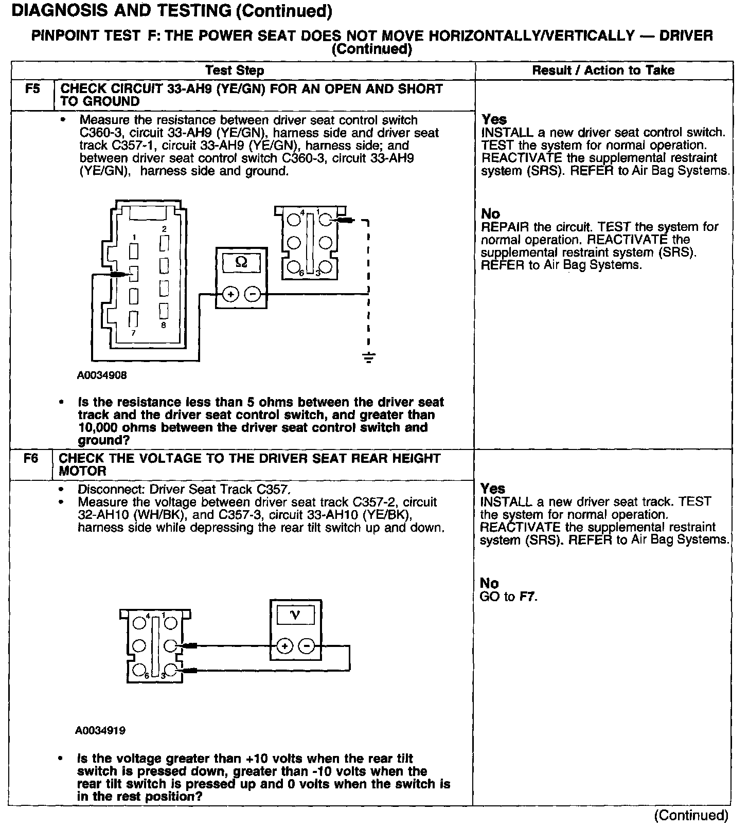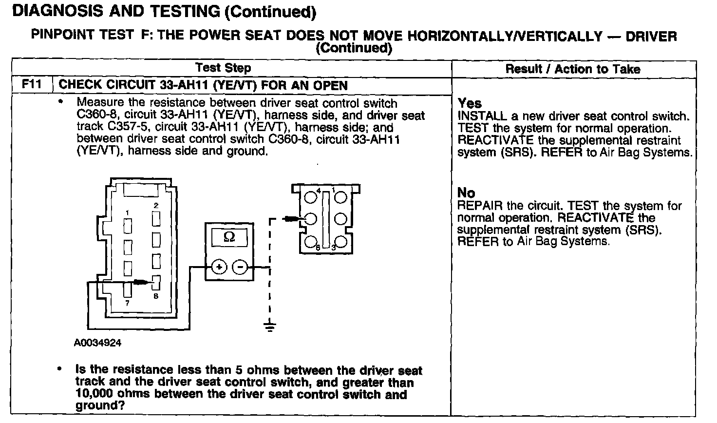 PINPOINT TEST F: THE POWER SEAT DOES NOT MOVE HORIZONTALLY/VERTICALLY - DRIVERTest F1-F2: