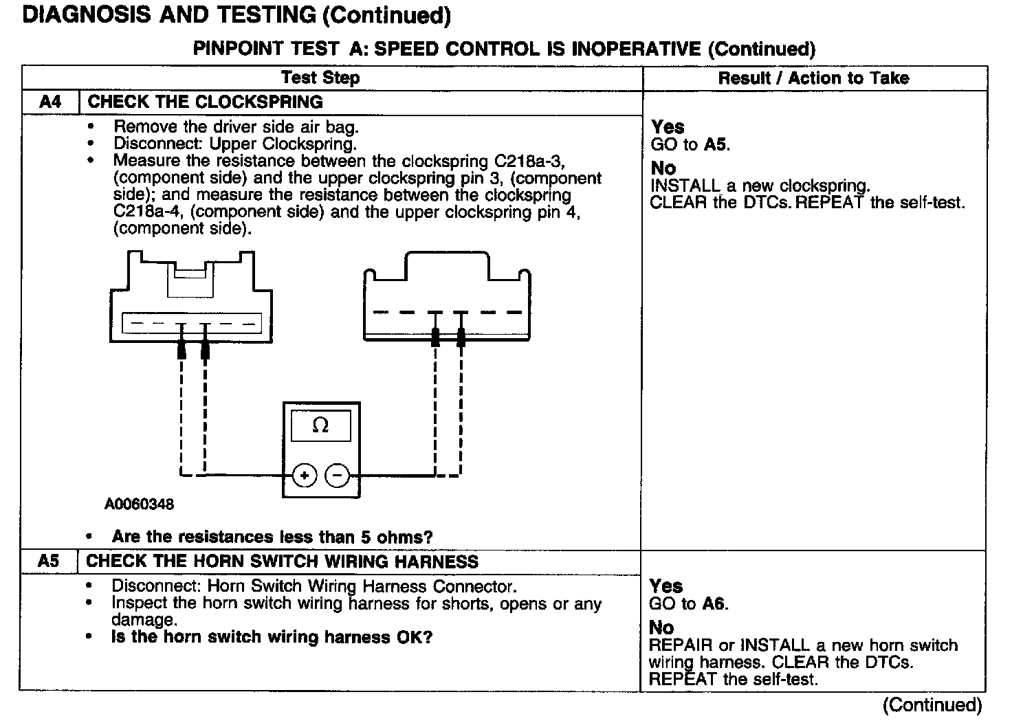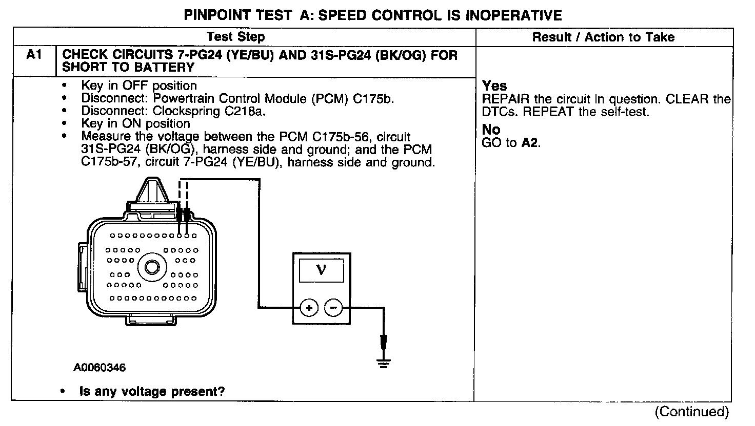 PINPOINT TEST A: THE SPEED CONTROL IS INOPERATIVETest A1: