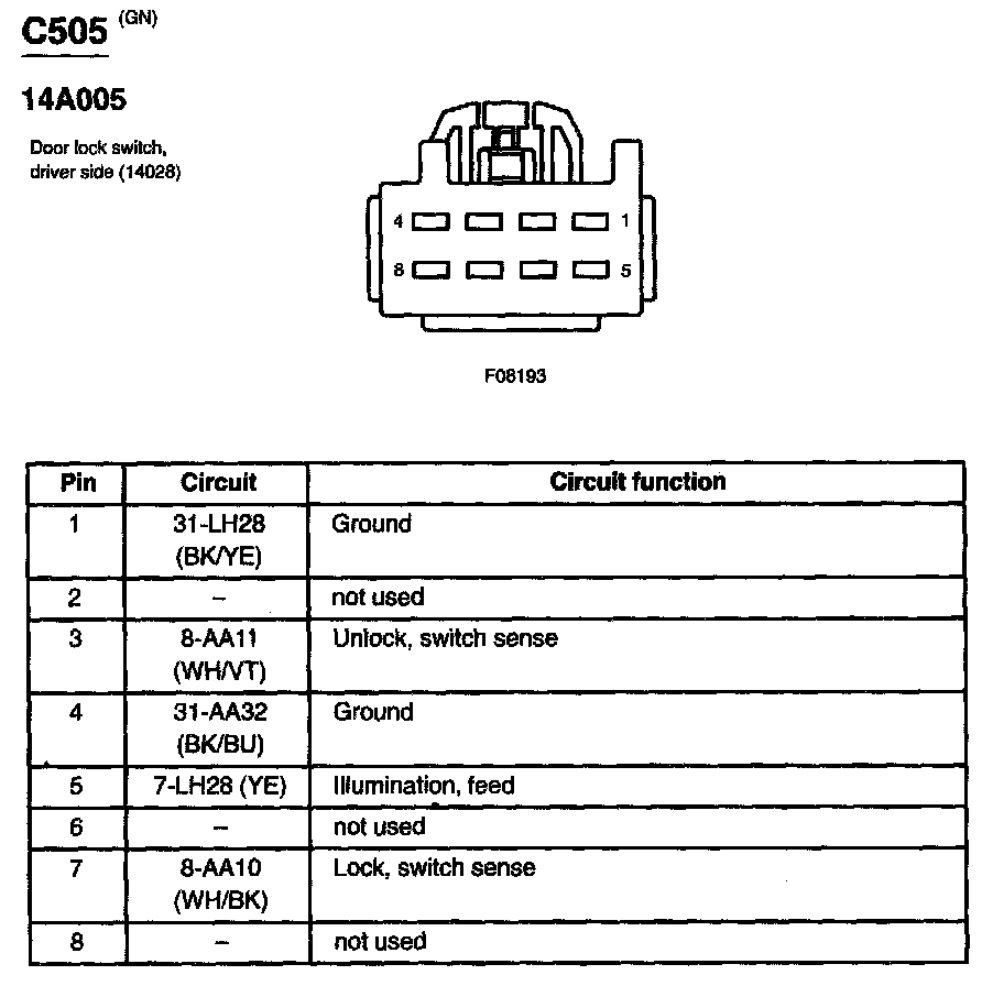 Door Lock Switch, Driver Side