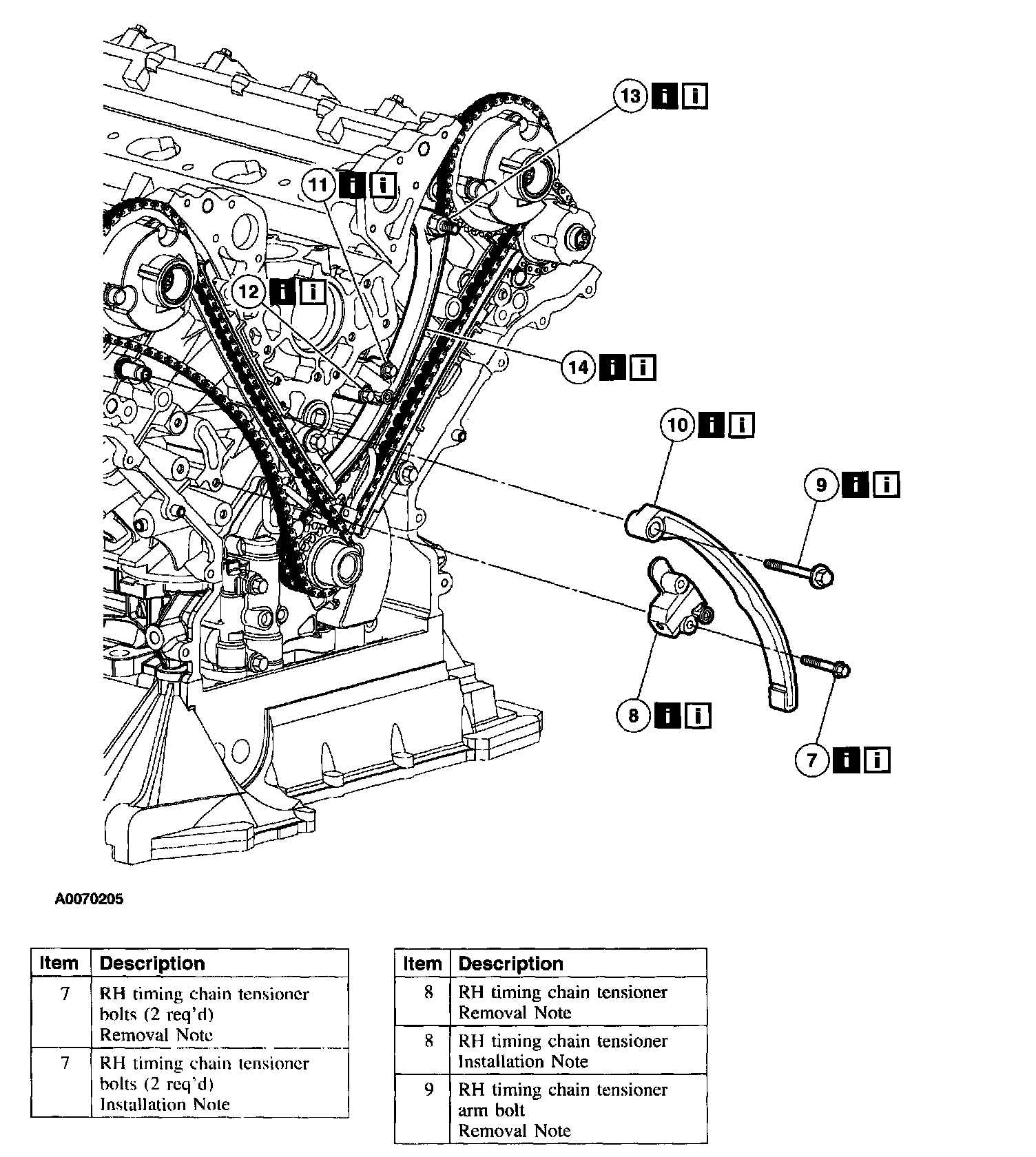 7. Remove the RH timing chain tensioner