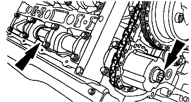 1. Collapse the LH secondary timing chain tensioner and install a pin to lock the piston.
