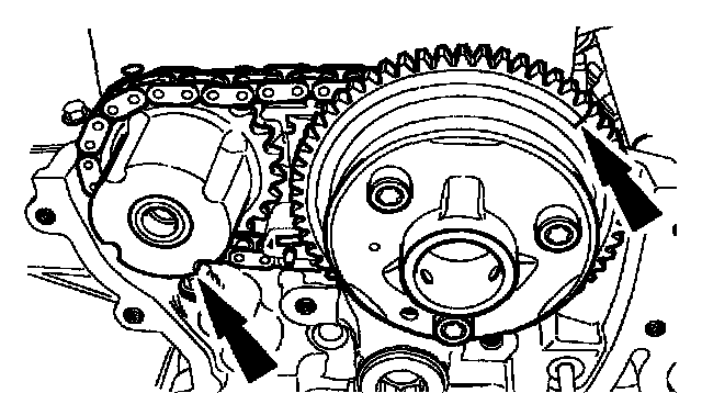^ Position the crankshaft gear in the timing chain.
