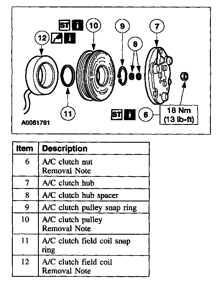 Item 12: A/C Clutch Field Coil Removal Note