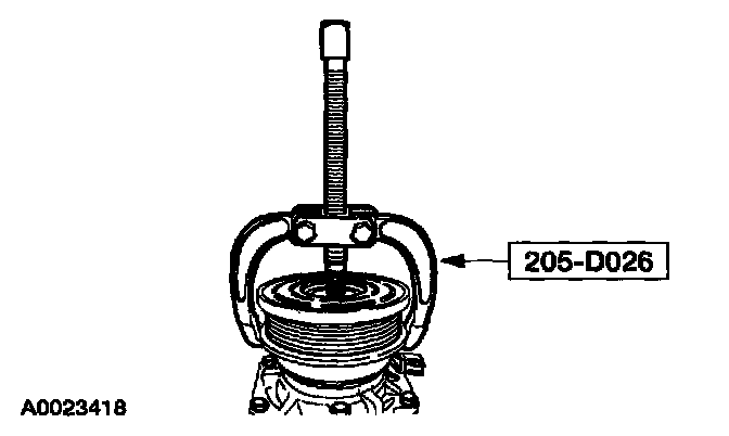 Using the special tool, remove the A/C clutch pulley.