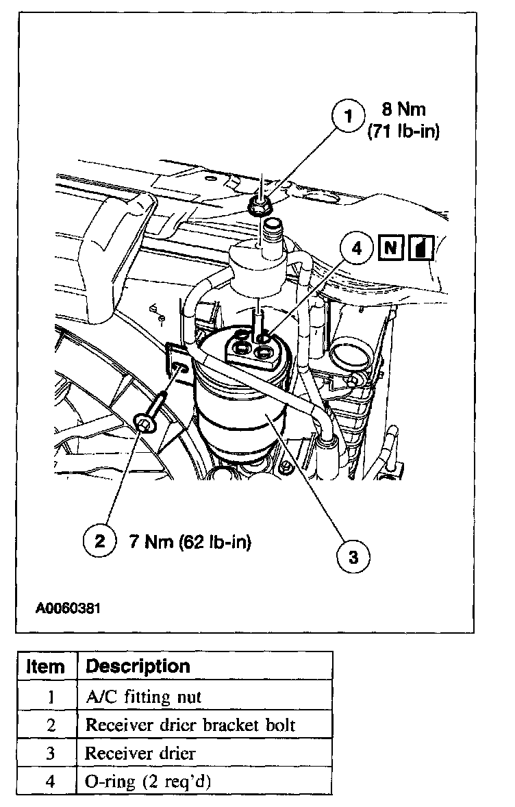 - Installation of a new receiver drier is not required when repairing the air conditioning system except when there is physical evidence of contamination from a failed A/C compressor or damage to the receiver drier.