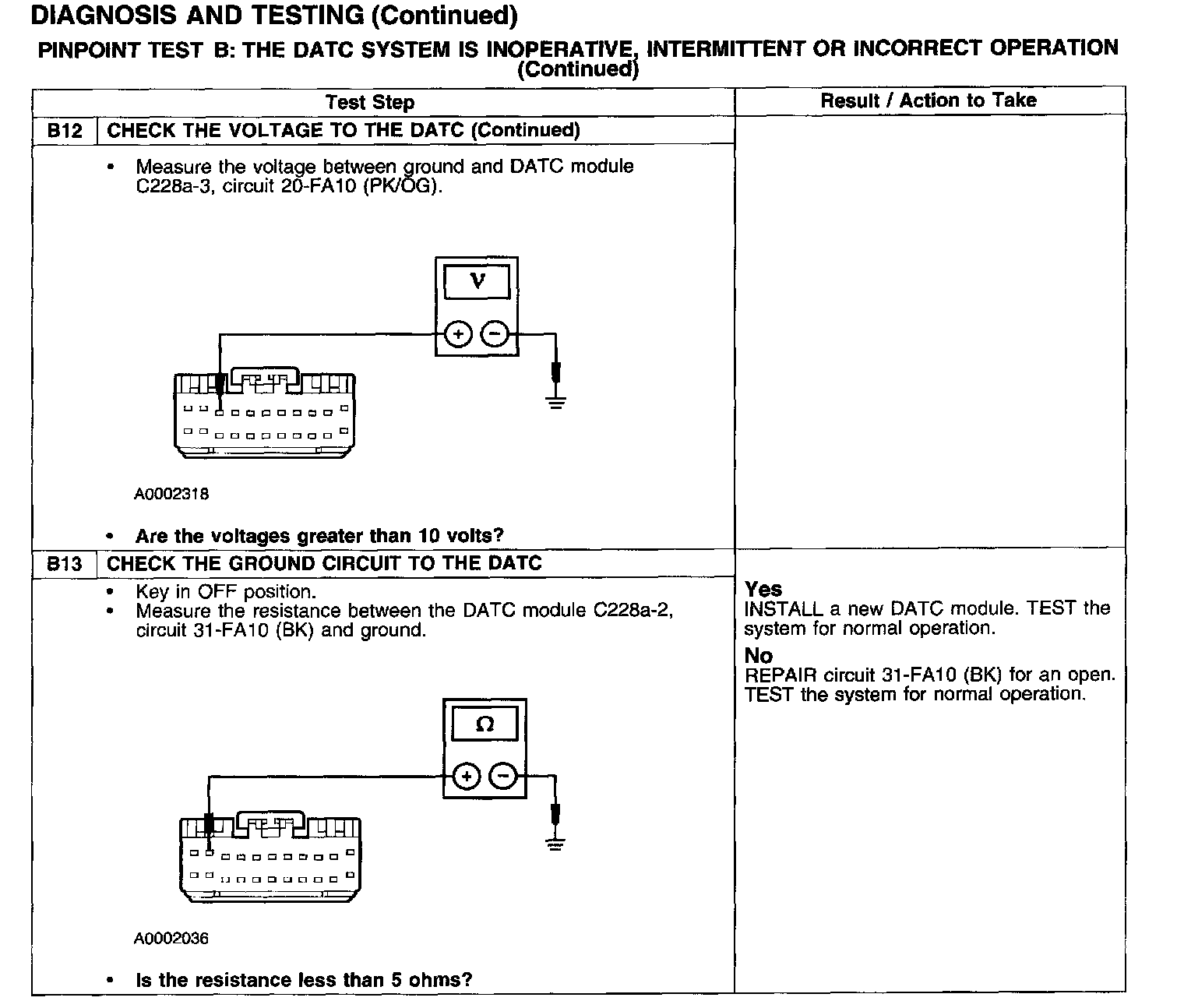 PINPOINT TEST B: THE DATC SYSTEM IS INOPERATIVE, INTERMITTENT OR INCORRECT OPERATIONTest B1-B7: