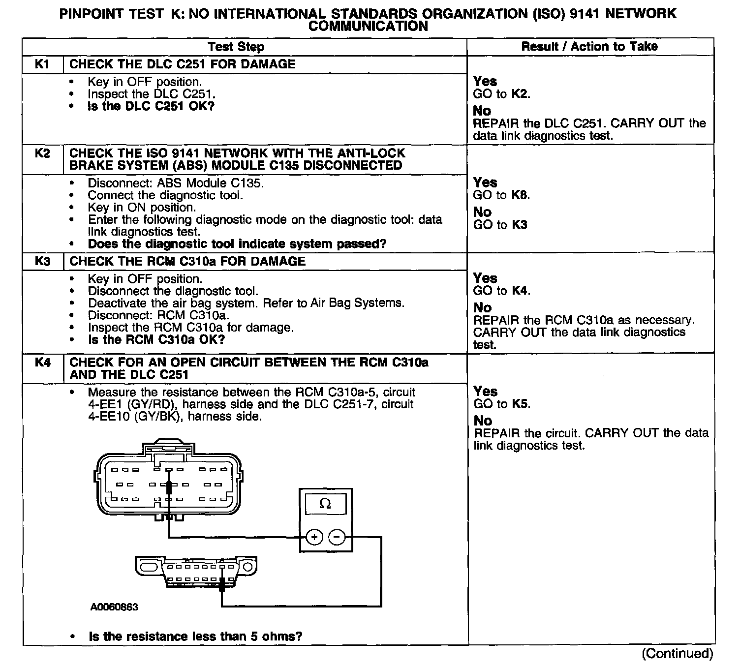 PINPOINT TEST K: NO INTERNATIONAL STANDARDS ORGANIZATION (ISO) 9141 NETWORK COMMUNICATIONTest K1-K4: