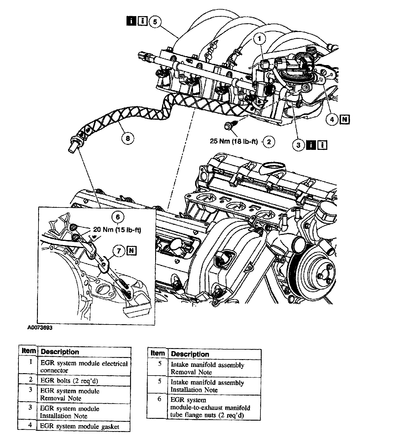 2. Disconnect the EGR system module-to-exhaust manifold tube from the EGR system module.