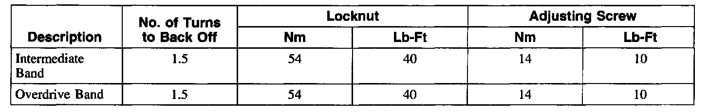 Band Adjustment and Torque Chart