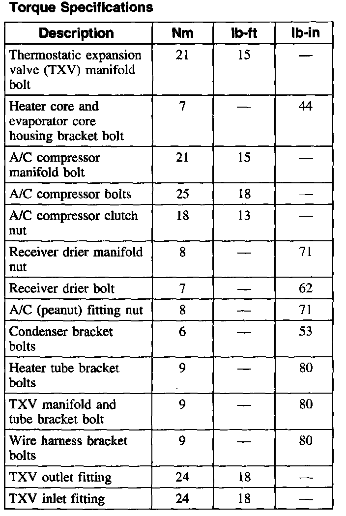 Torque Specifications: