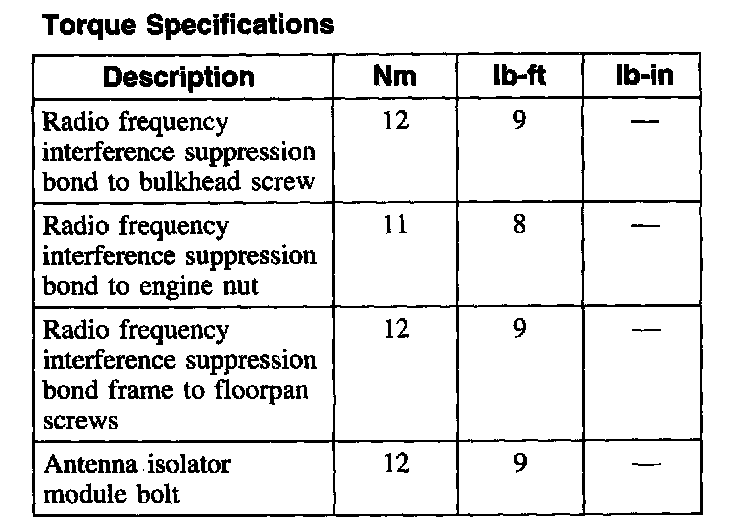 Torque Specifications: