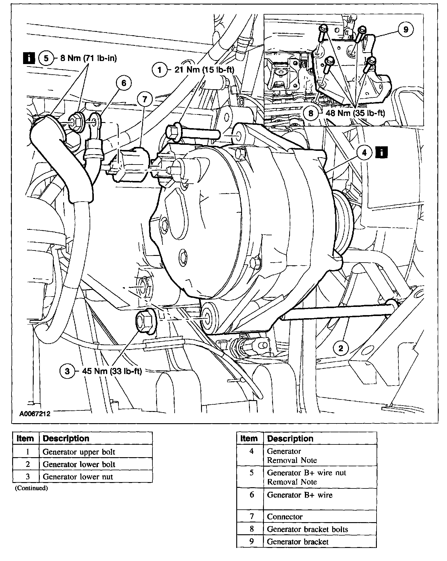 Item 5: Generator B+ Wire Nut Removal Note
