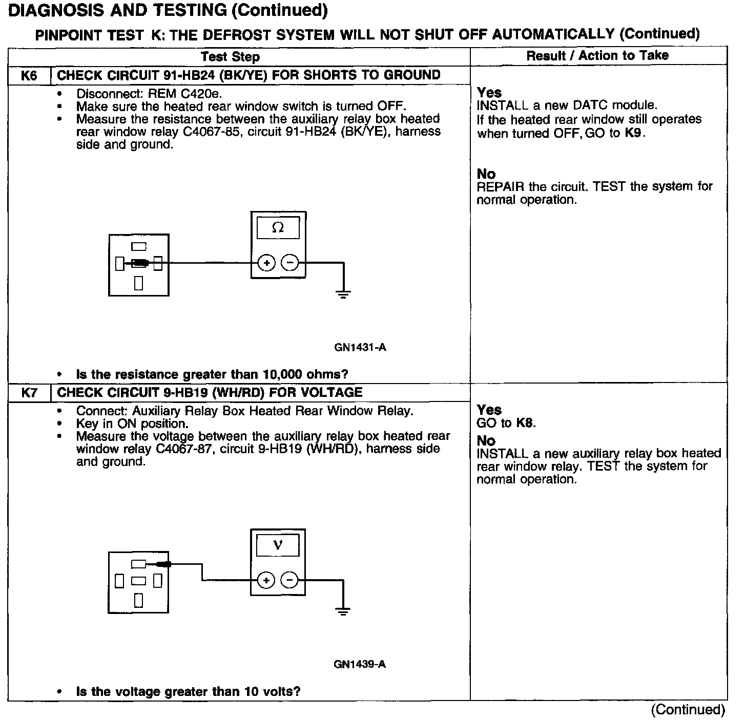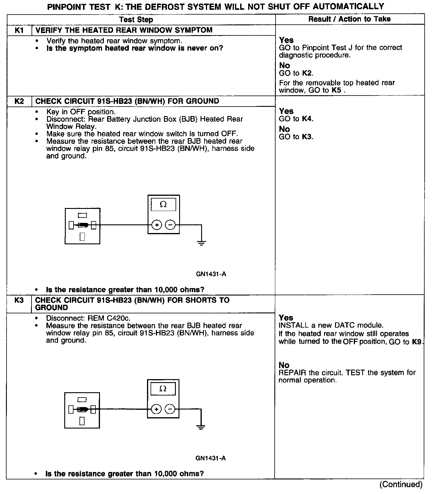 PINPOINT TEST K: THE DEFROST SYSTEM WILL NOT SHUT OFF AUTOMATICALLYTest K1-K3: