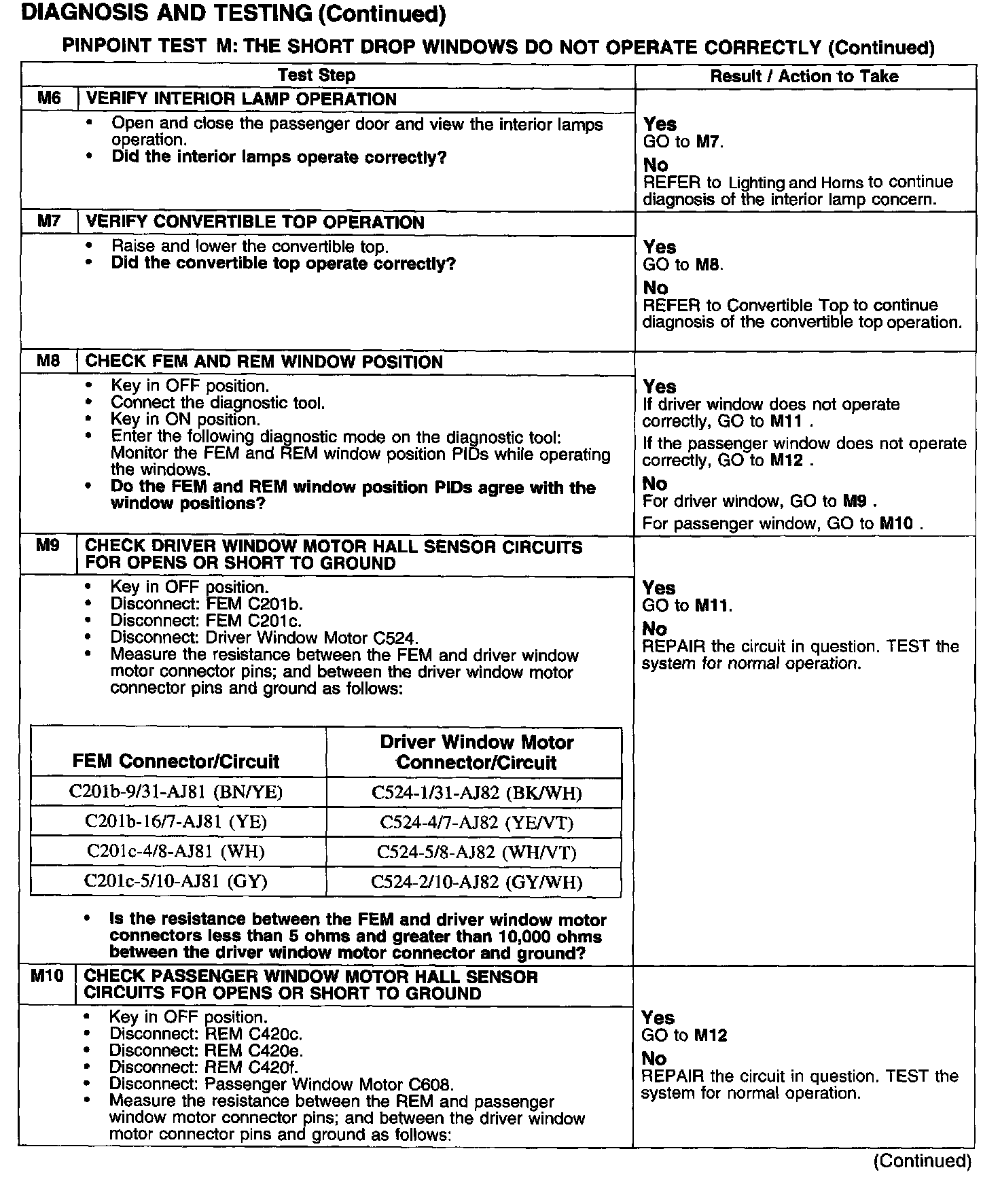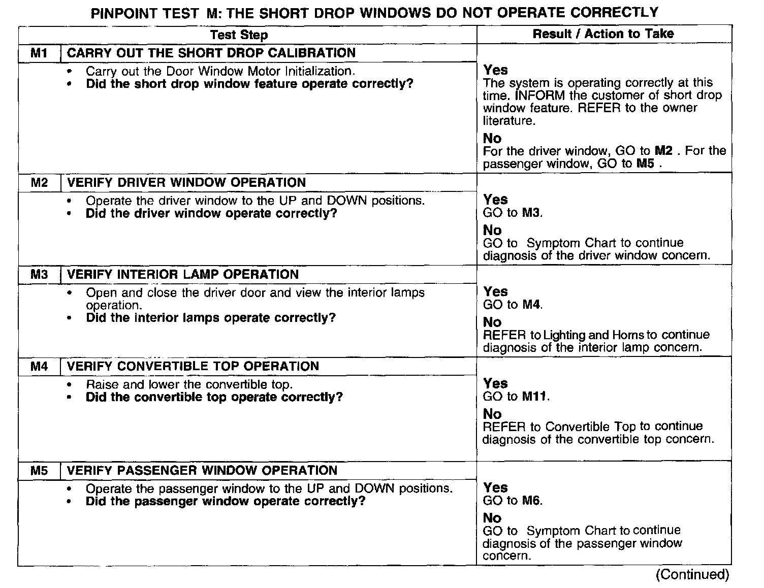PINPOINT TEST M: THE SHORT DROP WINDOWS DO NOT OPERATE CORRECTLYTest M1-M5: