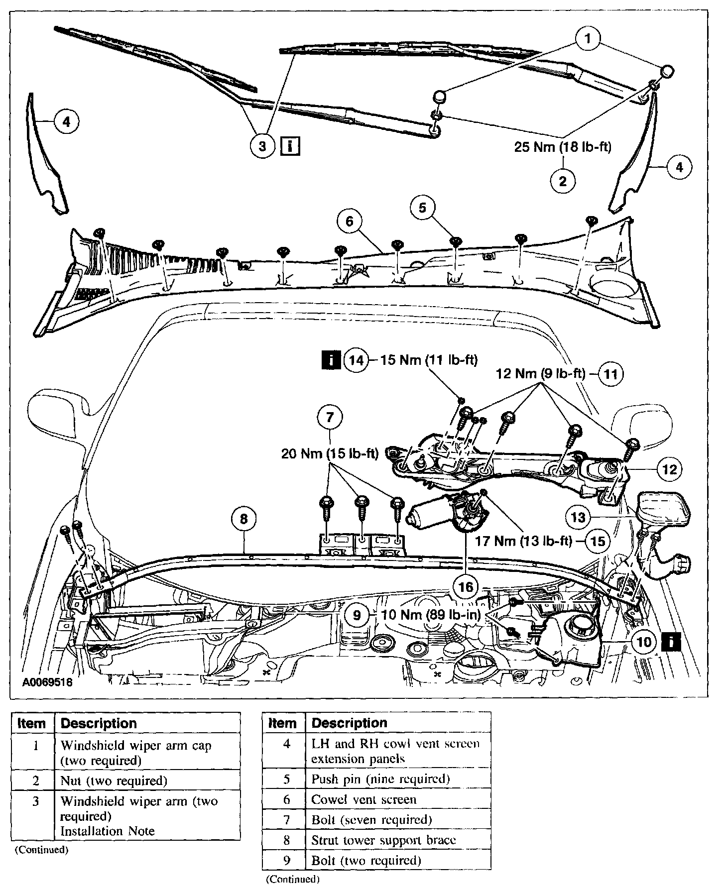 1. CAUTION: The windshield wiper system has an auto park feature. It is necessary to disconnect the battery.