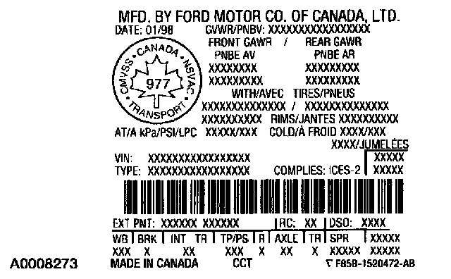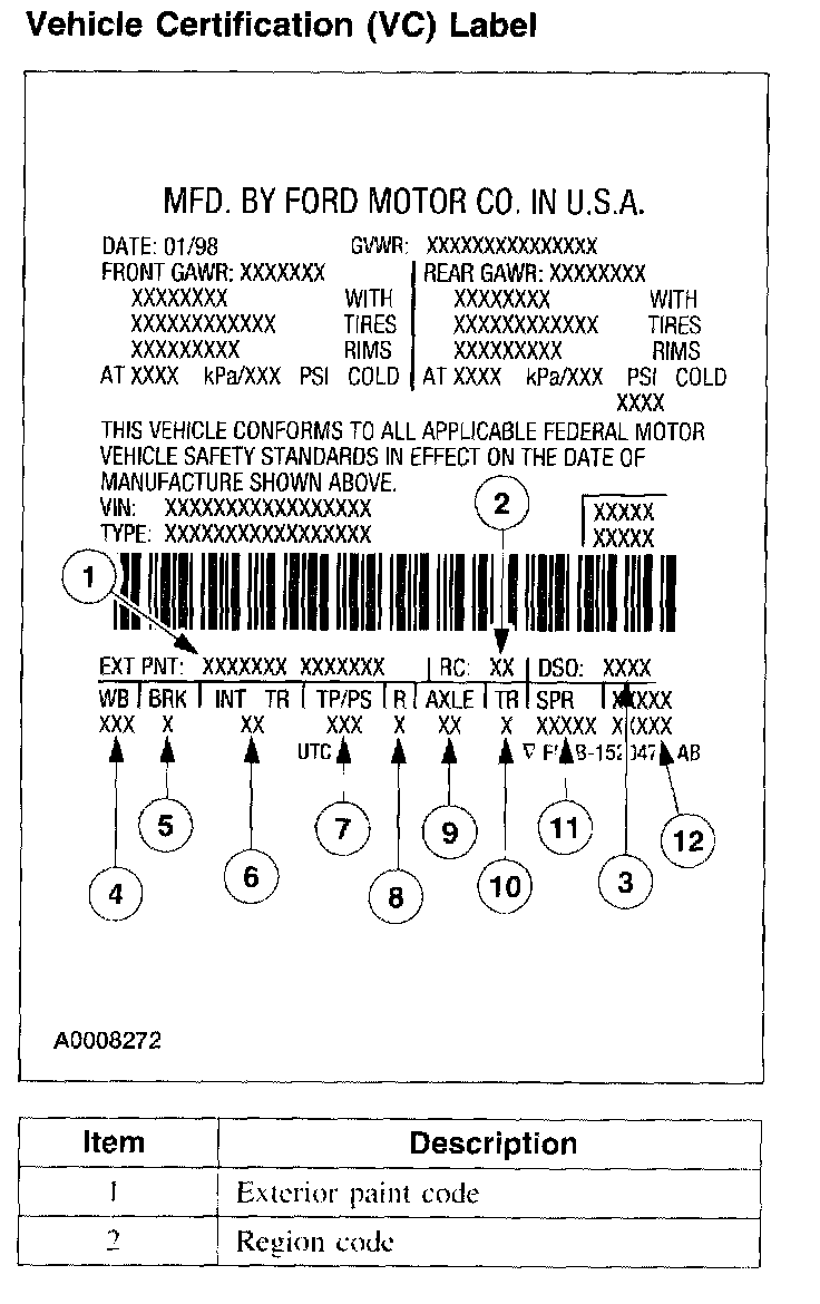 VEHICLE CERTIFICATION (VC) LABEL REFERENCE