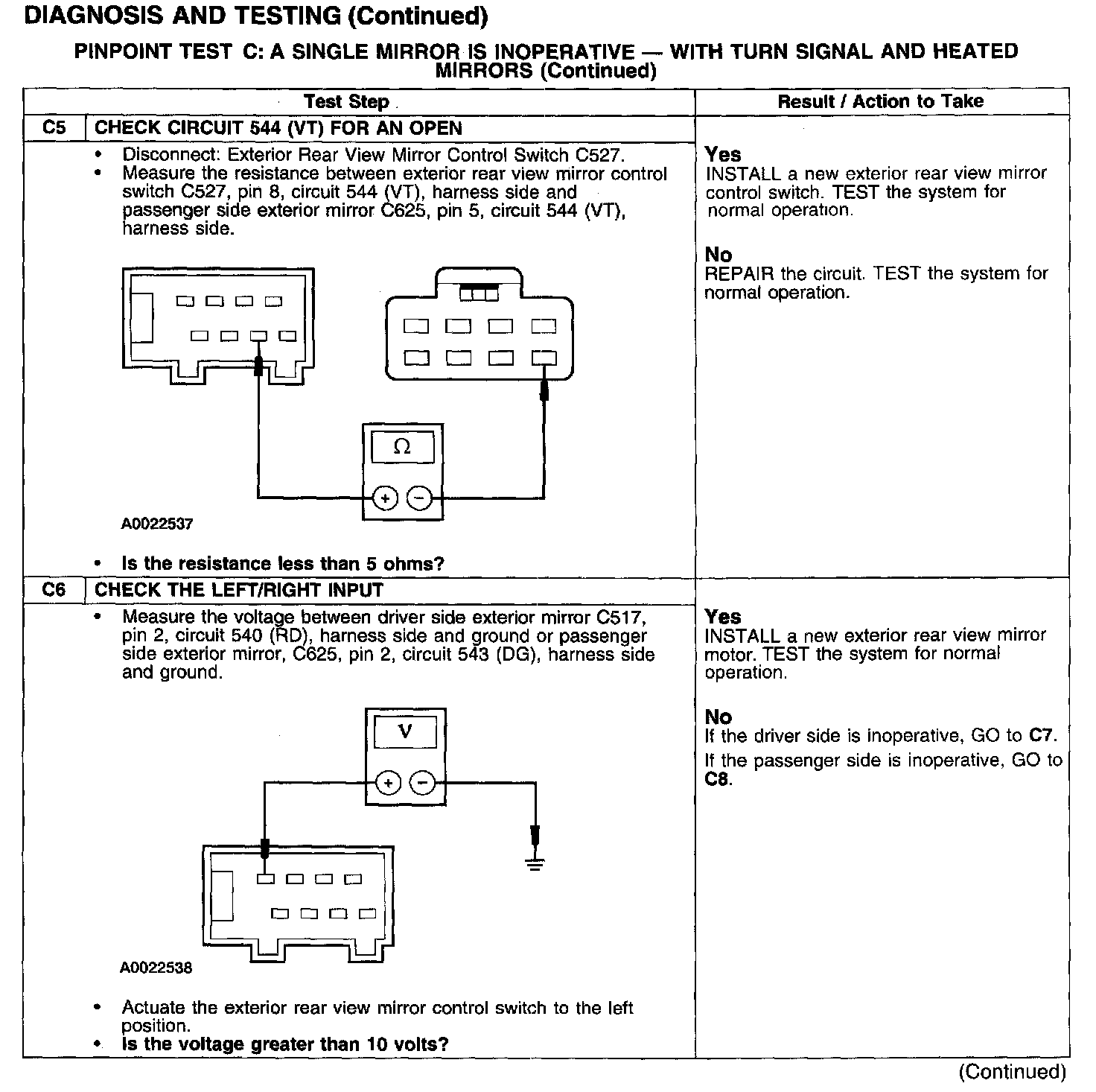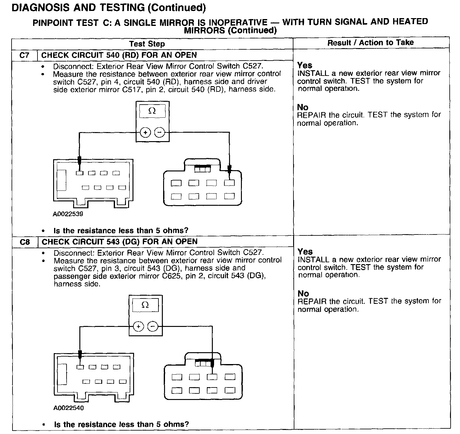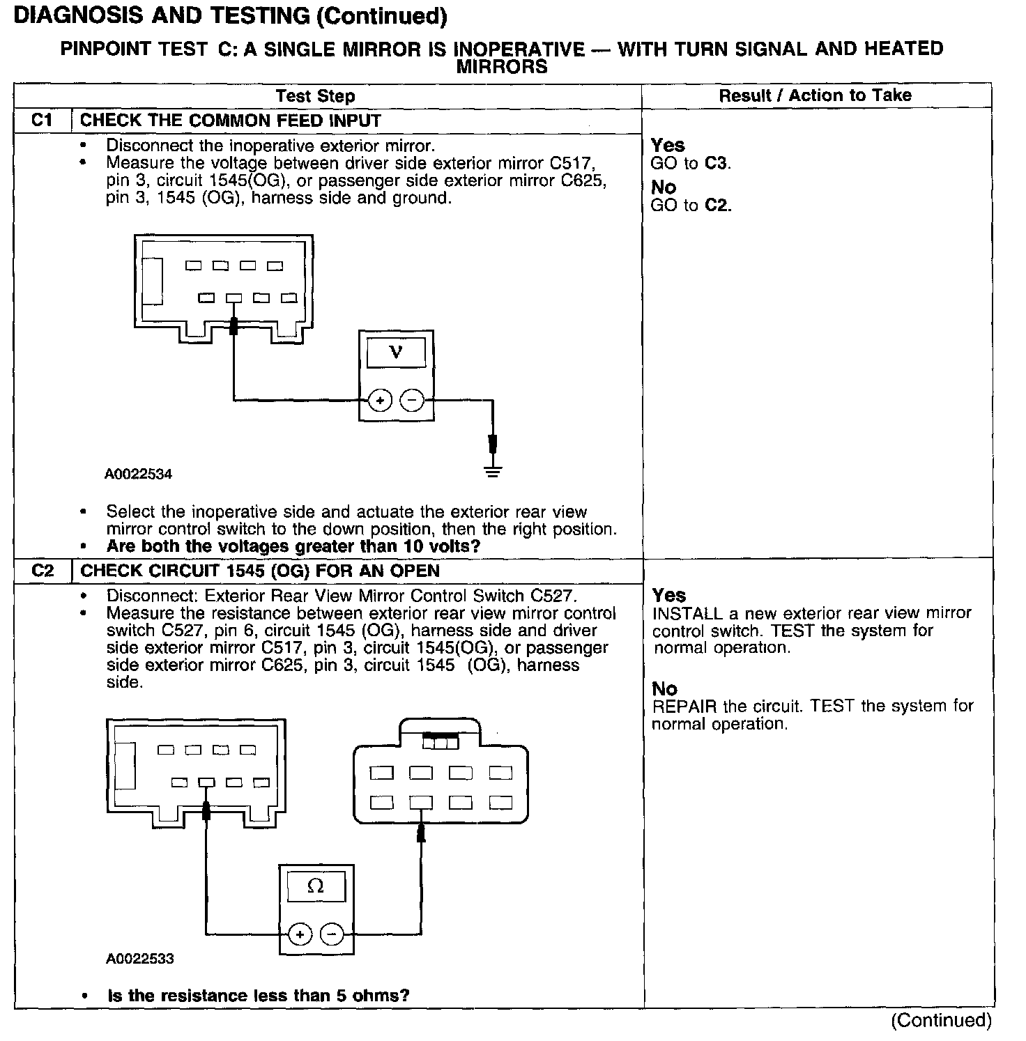 PINPOINT TEST C: A SINGLE MIRROR IS INOPERATIVE - WITH TURN SIGNAL AND HEATED MIRRORS