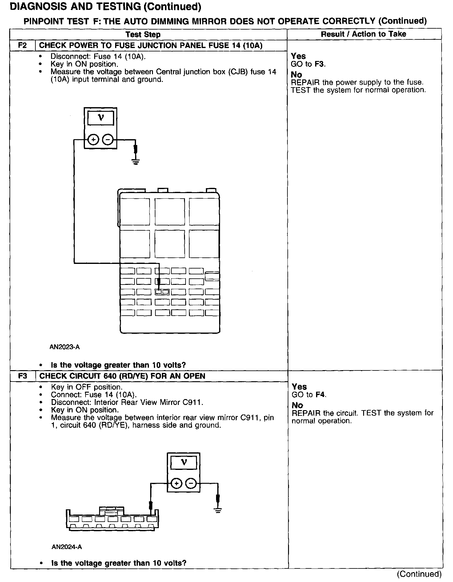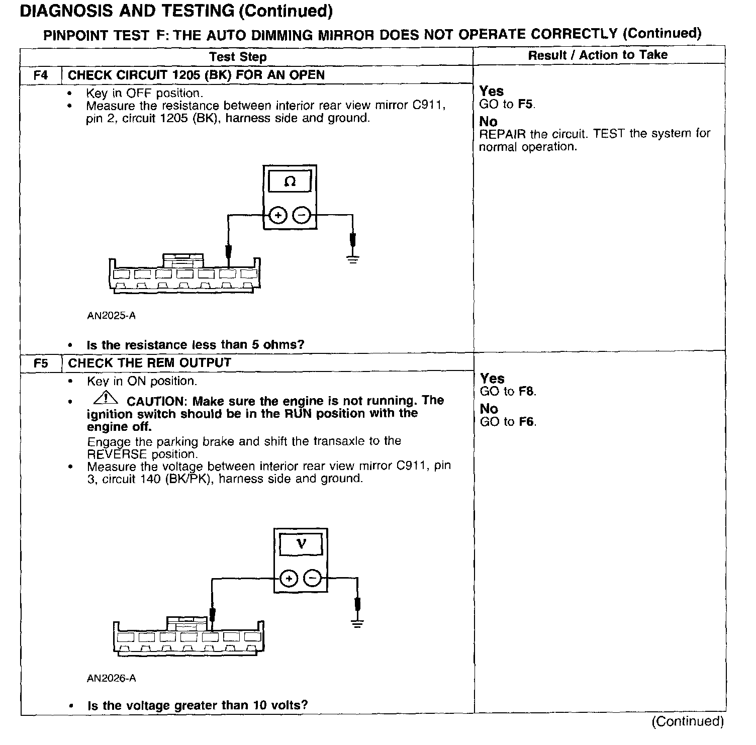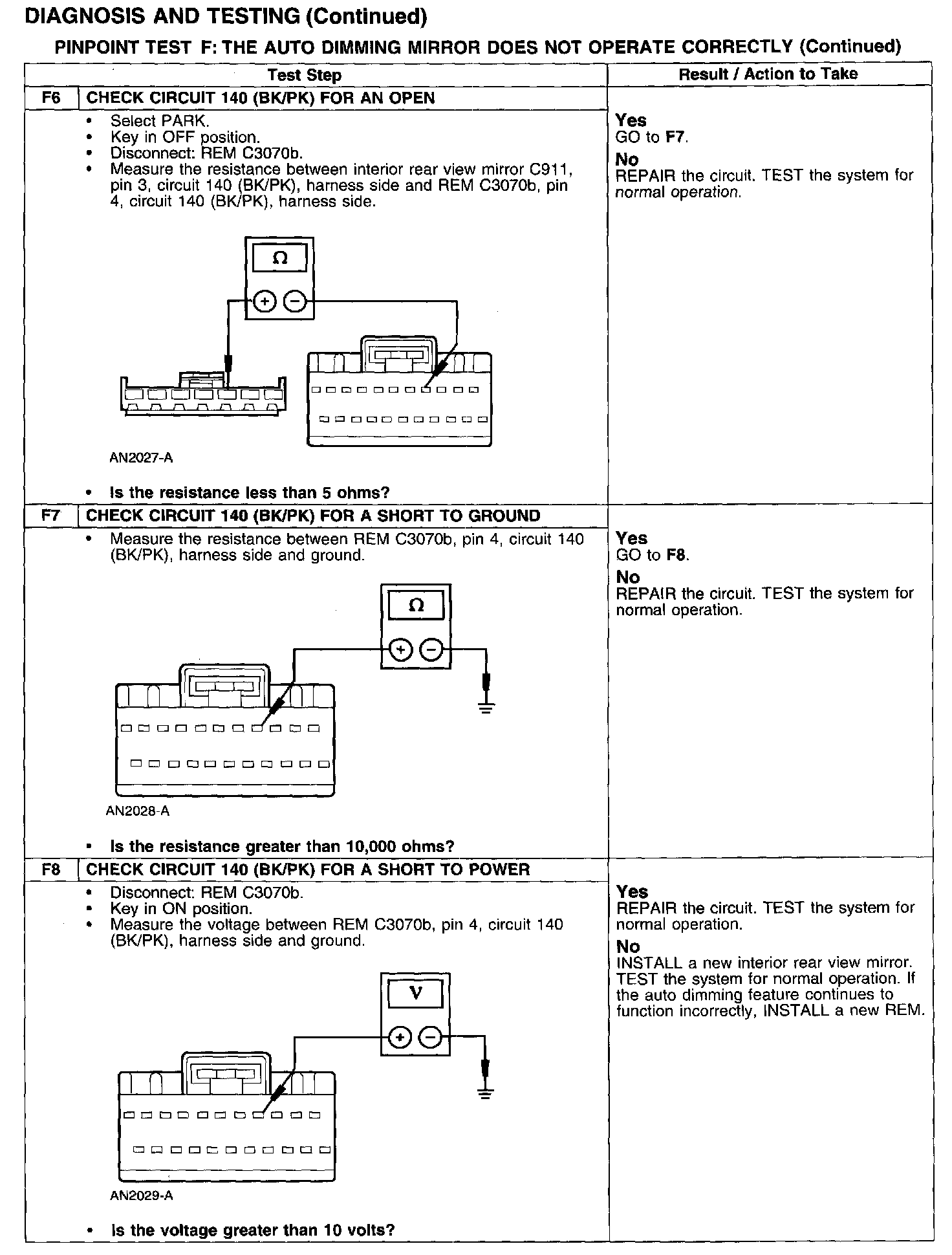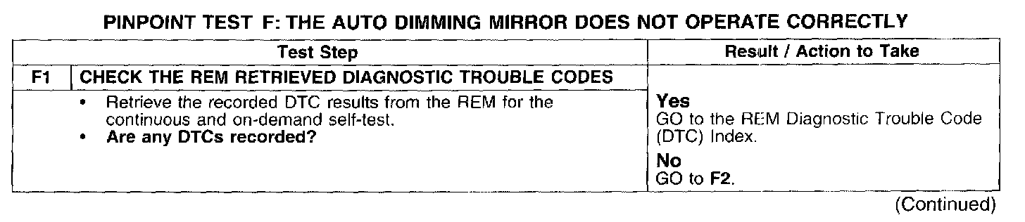 PINPOINT TEST F: THE AUTO DIMMING MIRROR DOES NOT OPERATE CORRECTLY