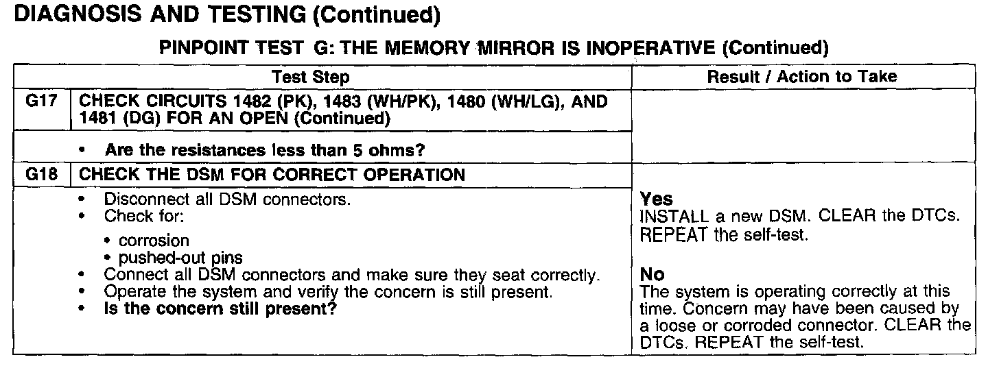 PINPOINT TEST G: THE MEMORY MIRROR IS INOPERATIVE